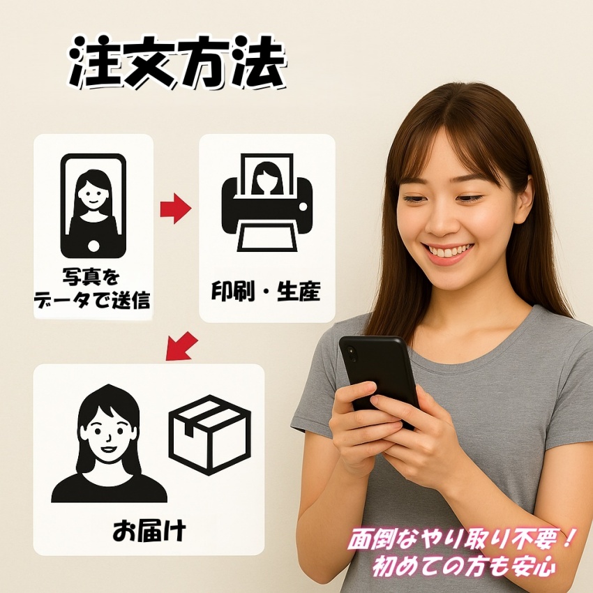 【ご注文後、カスタム写真を下記のメールアドレスにお送りいただけますようお願い申し上げます。】