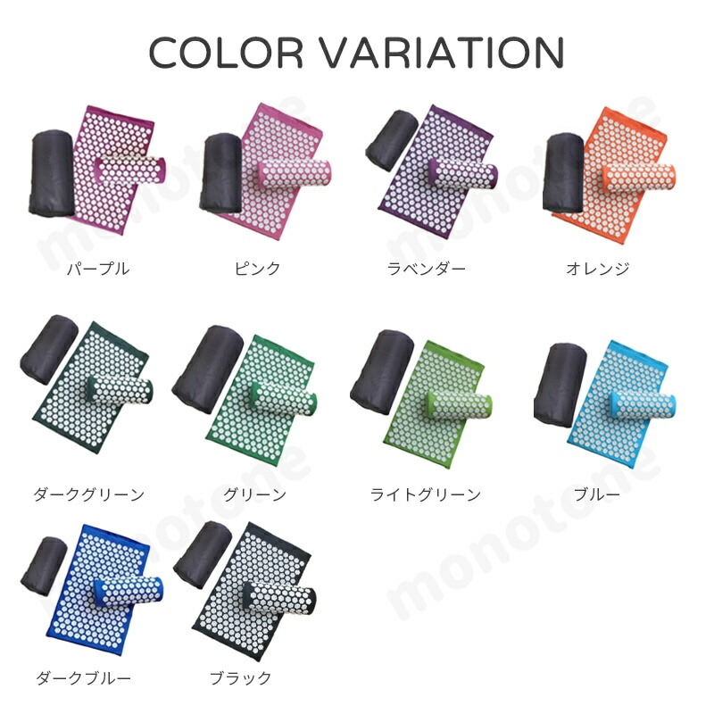 新品 10色 指圧マット 枕セット 鍼 グリーン オレンジ ブルー ピンク ラベンダー ダークグリーン パープル ライトグリーン ダークブルー ブラック