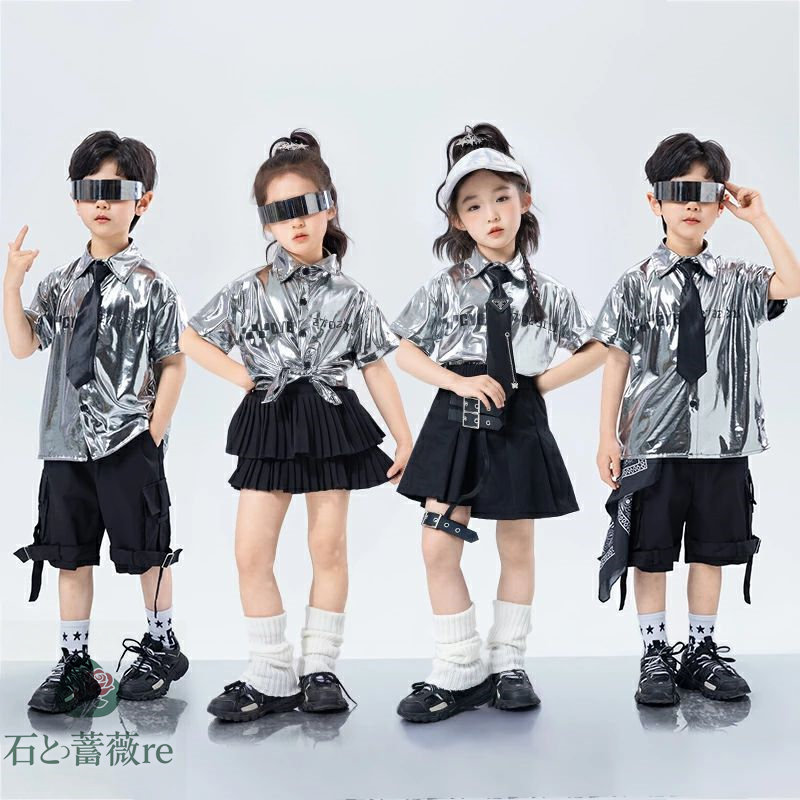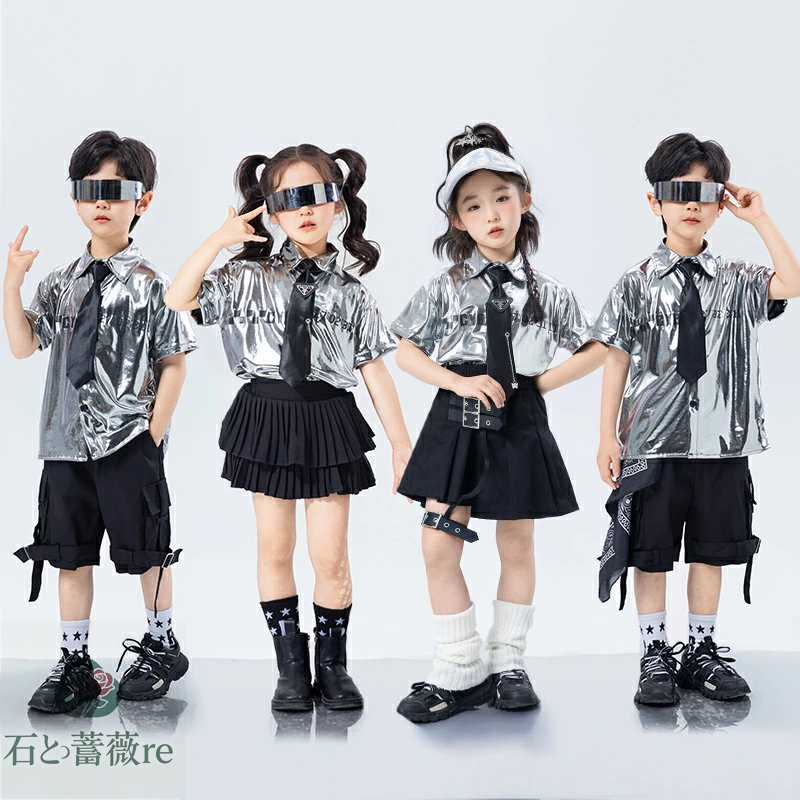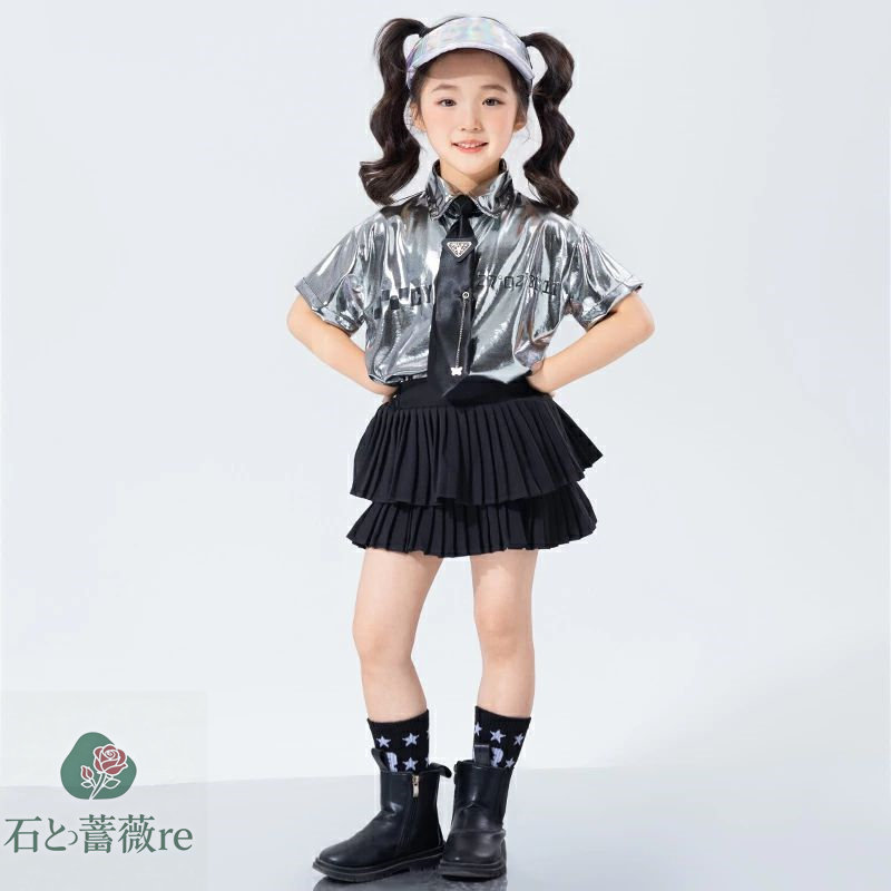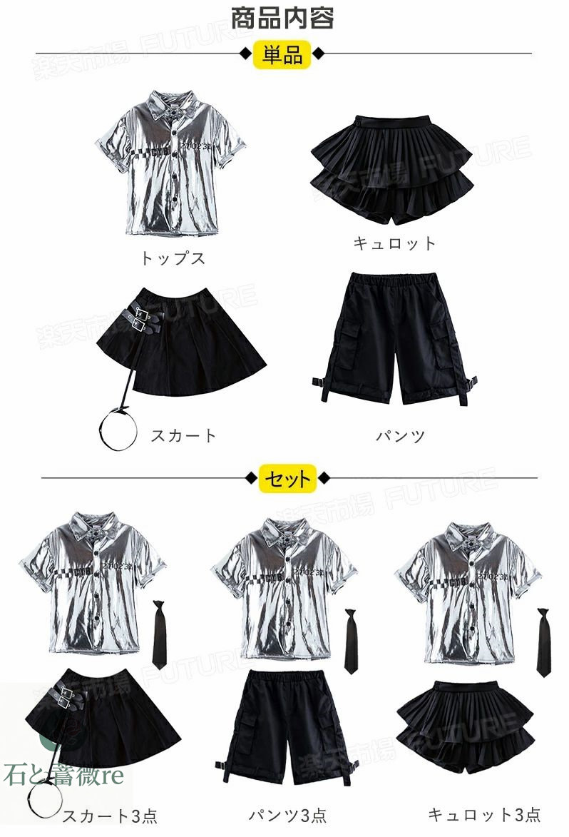 シルバー キッズダンス衣装 シャツ チ スポーツ アウトドア 通販 トップス スカート キュロット パンツ スカート3点セット キュロット3点セット パンツ3点セット 100cm 110cm 120cm 130cm 140cm 150cm 160cm 170cm 180cm