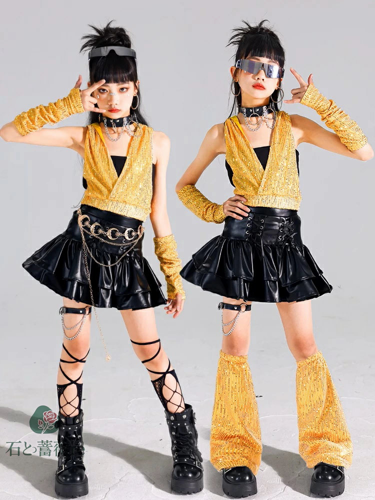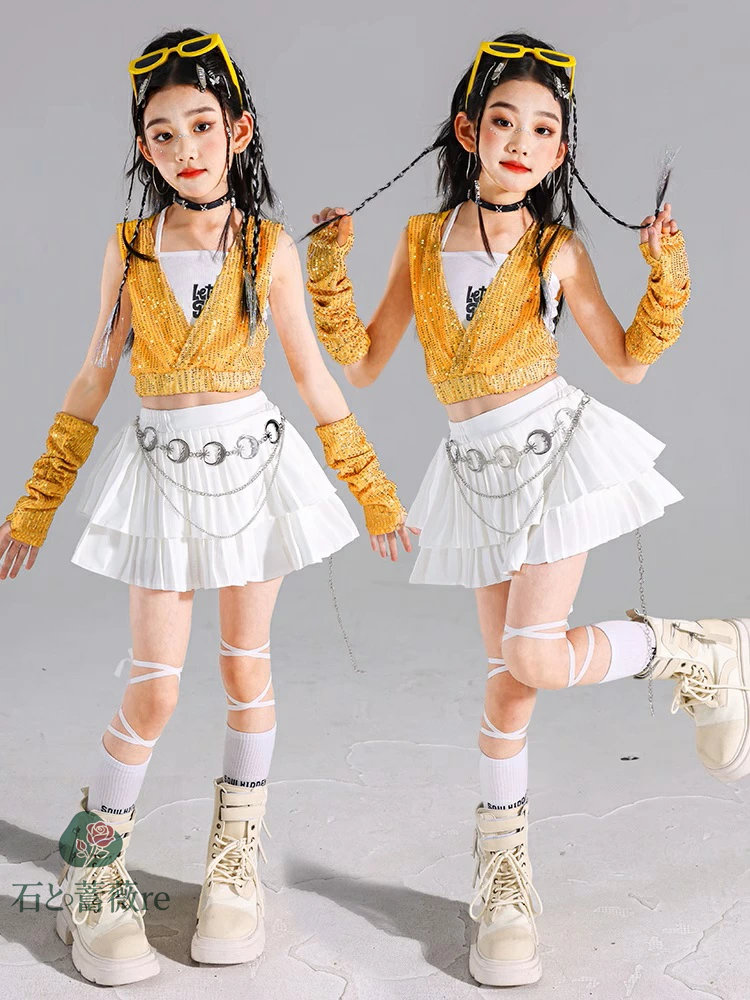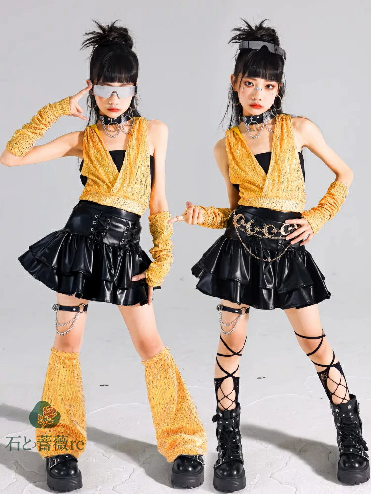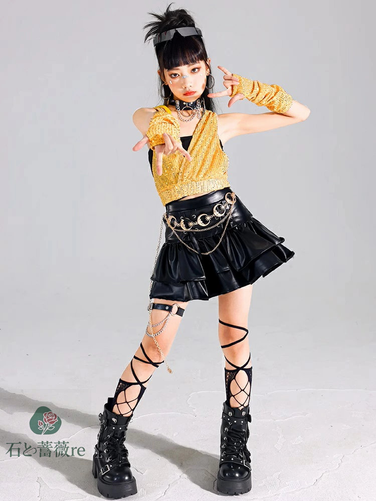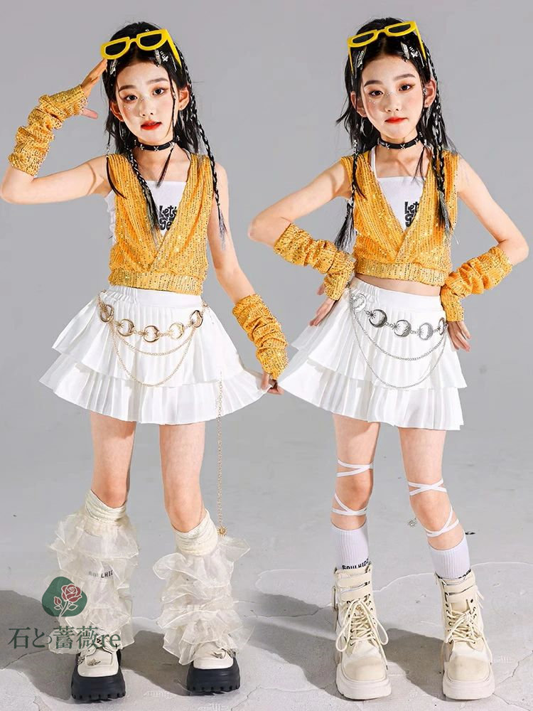 ダンス衣装 ガールズ 衣装 ゴールド スポーツ アウトドア 人気 黒スカートタイプ上下4点set 白スカートタイプ上下4点set 黒スカートタイプ5点set脚カバー付 白スカートタイプ5点set(靴下付き) トップスのみ(黒インナー付き) トップスのみ(白インナー付き) 黒スカートのみ 白スカートのみ 110サイズ 120サイズ 130サイズ 140サイズ 150サイズ 160サイズ 170サイズ