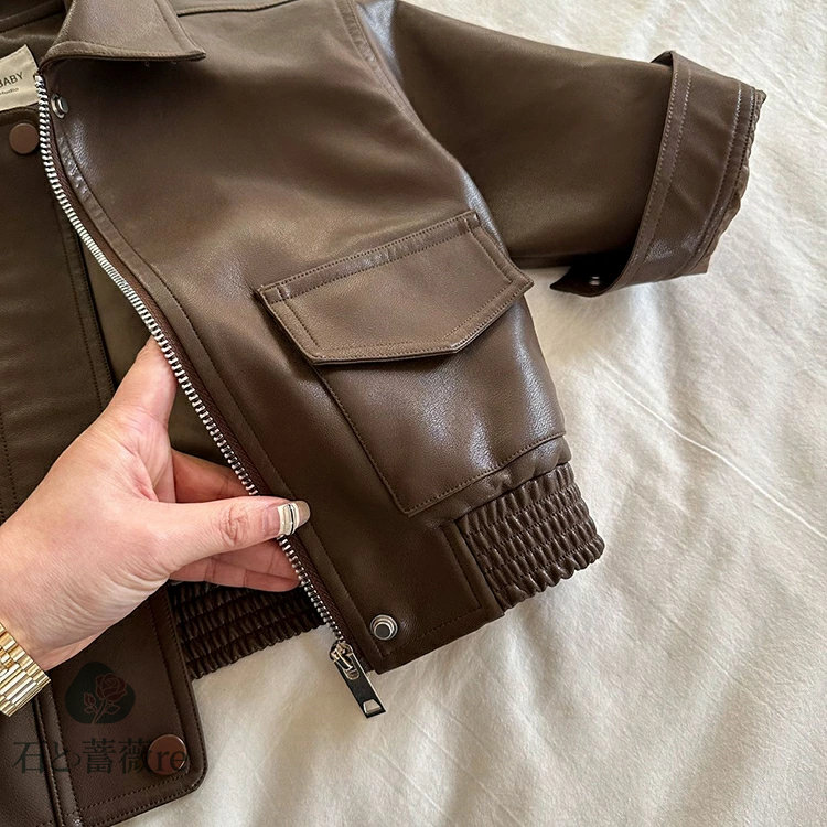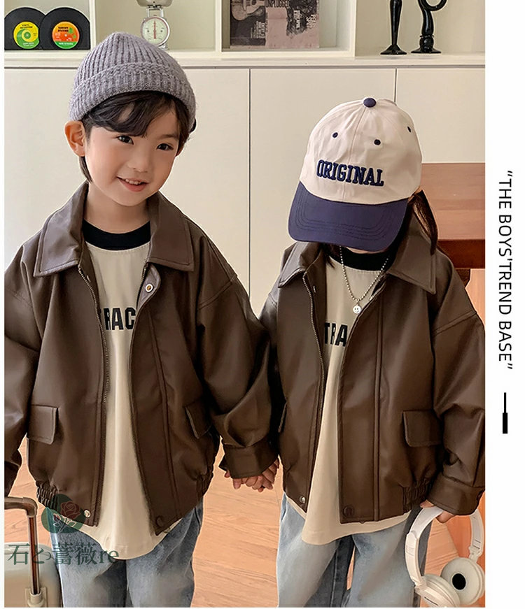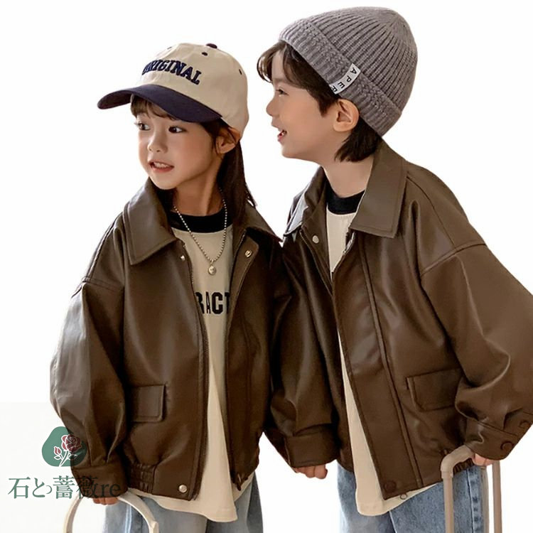 茶色 レザージャケット 女の子 男の子 キッズ コート ジャケット 期間限定割引クーポン 90cm 100cm 110cm 120cm 130cm 140cm