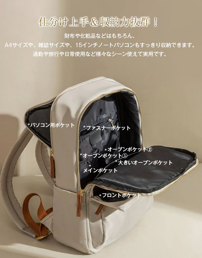 20日全品ポイント3倍 ビジネスリュッ バッグ レディースバッグ バックパック リュック 期間限定割引クーポン M L ベージュ グレー ピンク ブラック ダークグレー