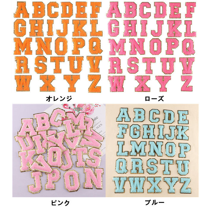 アルファベット 大文字 小文字 英語 手芸 クラフト 生地 裁縫材料 ワッペン アップリケ 豊富 Big Small オレンジ ローズ ピンク ブルー パープル ブラック ホワイト グリーン イェロー レッド