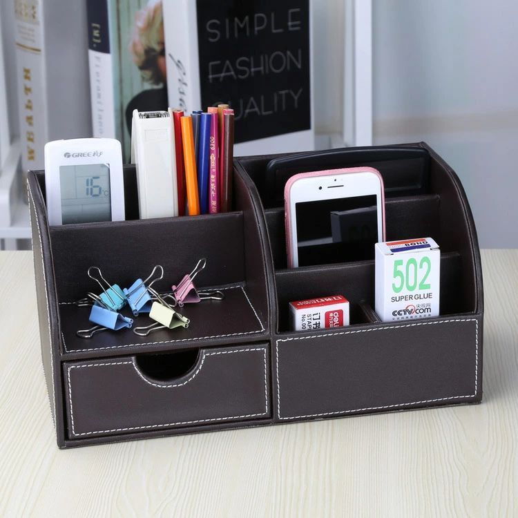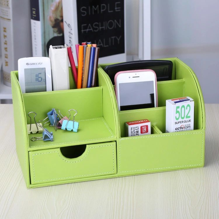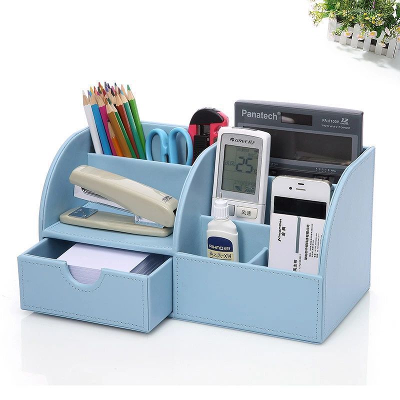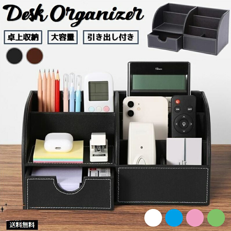 小物収納ボックス 卓上収納 7格 PU ブラック グリーン ブルー ホワイト
