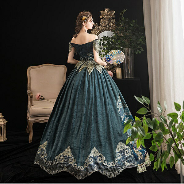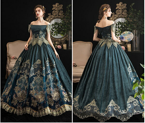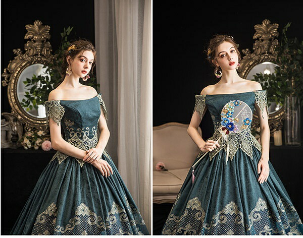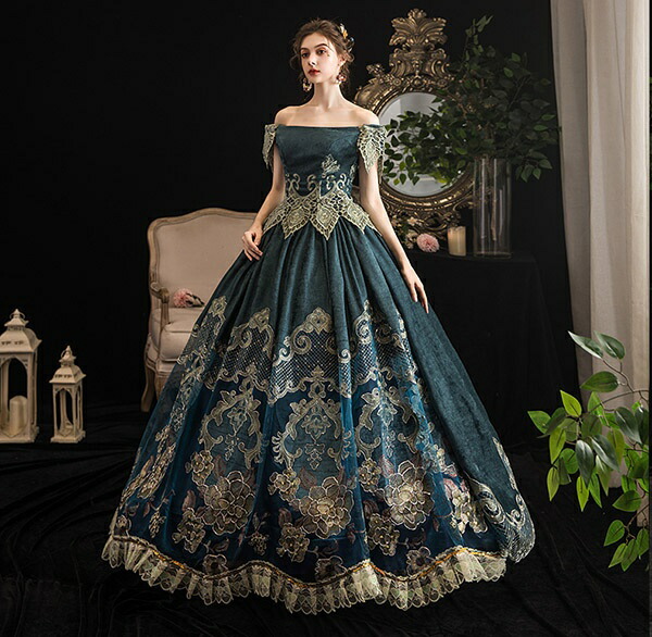 貴族 ドレス ステージ衣装 舞台衣装 オペラ声楽 中世貴族風 お姫様ドレス 宮廷 お嬢様 オフショルダー 貴族ドレス パーティー 中世 ファスナータイプ 演奏会用ロングドレス 大きいサイズ ワン 衣装