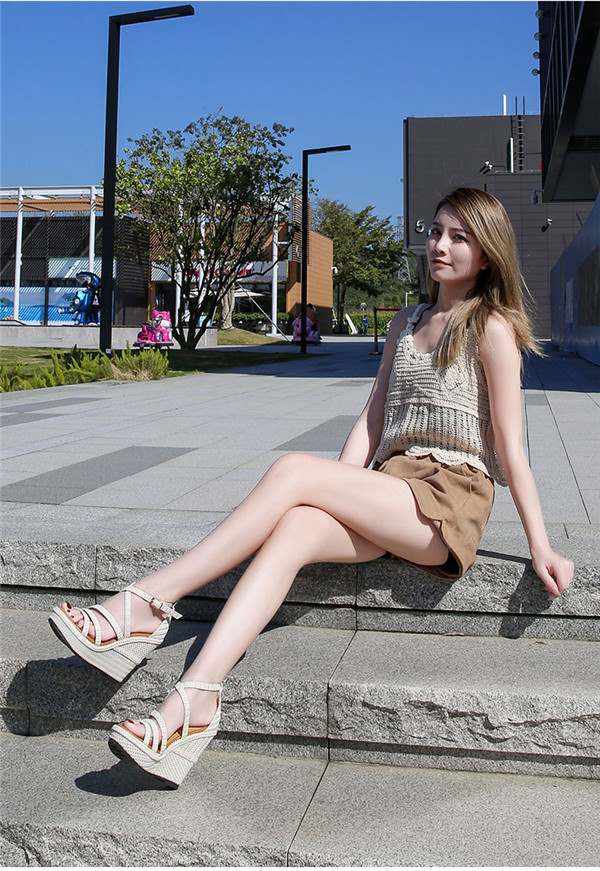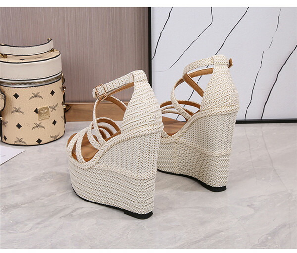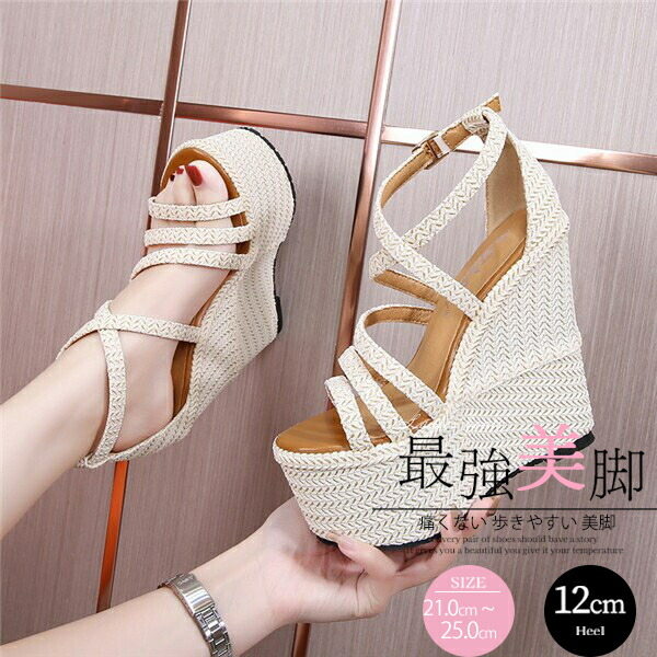 痛くない 歩きやすい 美脚 疲れにくい ウエッジソール サンダル レディース 厚底 幅広 靴 厚底サンダル アンクルストラップ ハイヒール 小さいサイズ21.0 ベージュ di800c 大きい25.0