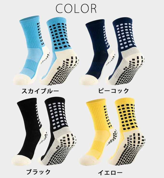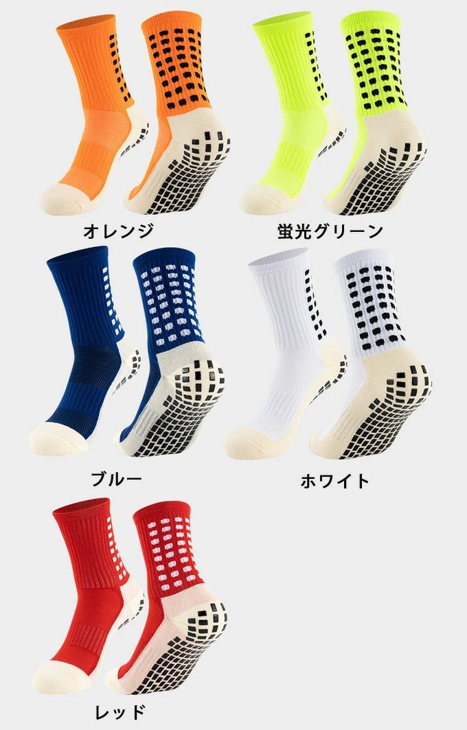 ランニング ソックス 滑り止め ミドル サッカー フットサル メンズウェア ストッキング 通販 ホワイト ブラック ブルー 蛍光グリーン レッド オレンジ イエロー スカイブルー ピーコック 大人用(23.0-26.5cm) 子供用(18.5-22.0cm)