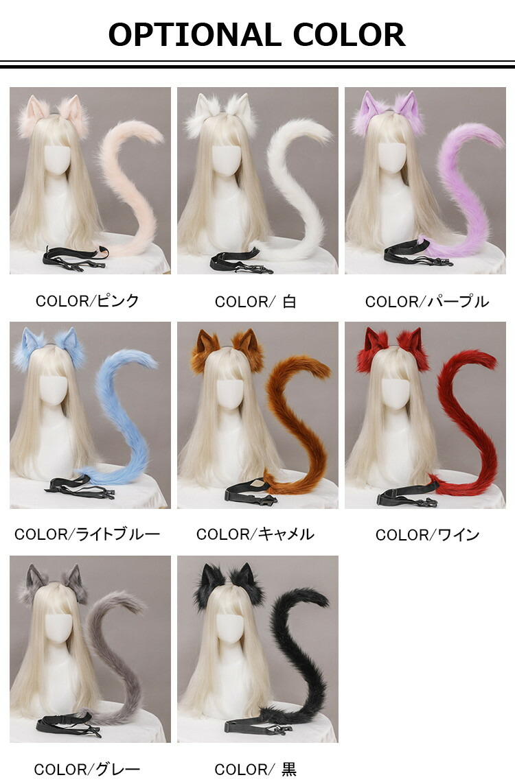 獣耳 カチューシャ 猫 ネコ しっぽ ホビー 早い者勝ち!ポイントUP ピンク 白 パープル ライトブルー キャメル ワイン グレー 黒