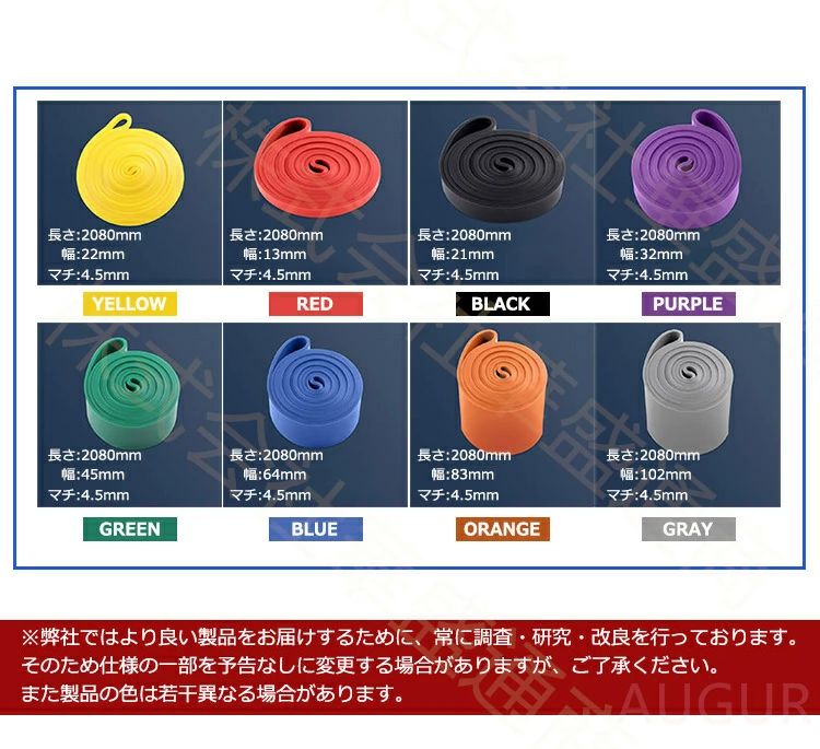 トレーニングチューブ ゴムチューブ バ YELLOW RED BLACK PURPLE GREEN BLUE ORANGE GRAY