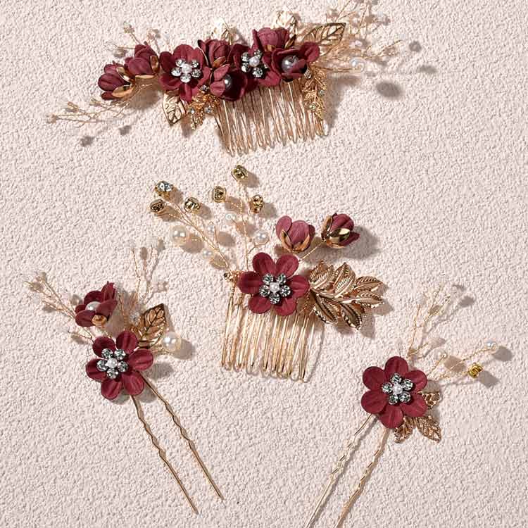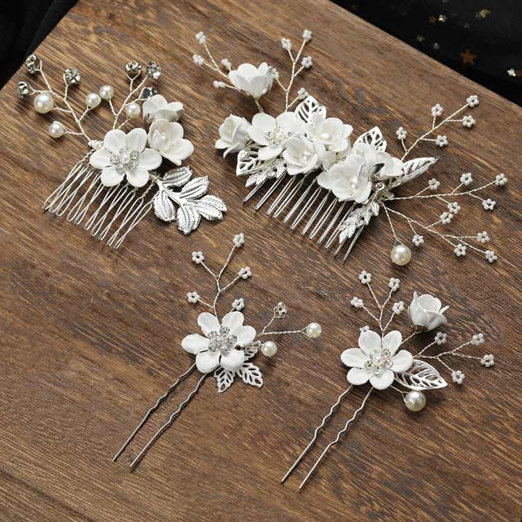 花 4点セット パール 髪飾り ヘッド 和服 和装小物 髪飾り 通販 ゴールド+ホワイト パープル ブルー ピンク グリーン バラ シルバー+ホワイト ネイビー レッド イエロー