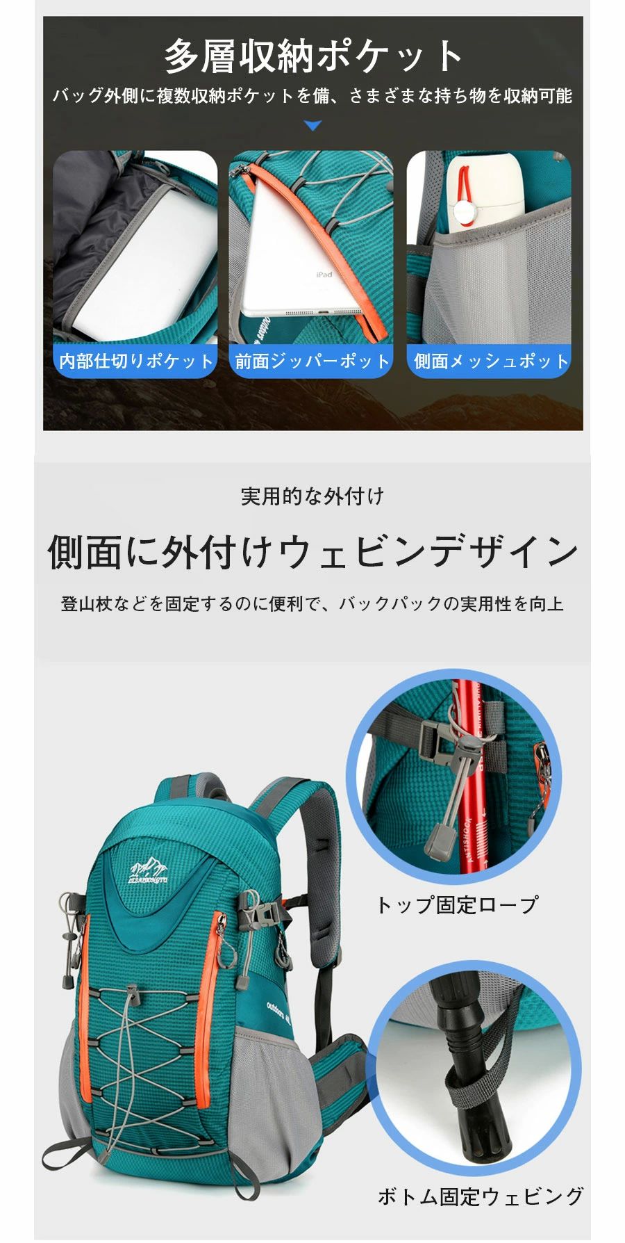 登山 リュック バッグ 大容量 リュッ アウトドア バッグ バックパック リュック 期間限定ポイントUP! ブラック パープル ブルー オレンジ グリーン レッド ダークブルー