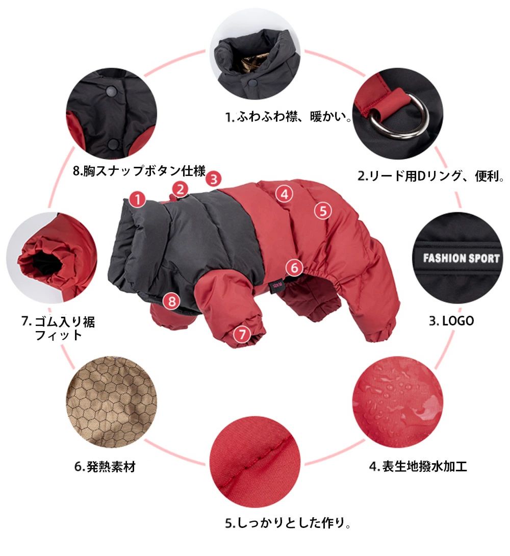犬の服 中型犬 小型犬 カバーオール ジャンパー 中綿ブルゾン 保温 コート アウター ドッグウェア ペット用 冬 犬用服 洋服