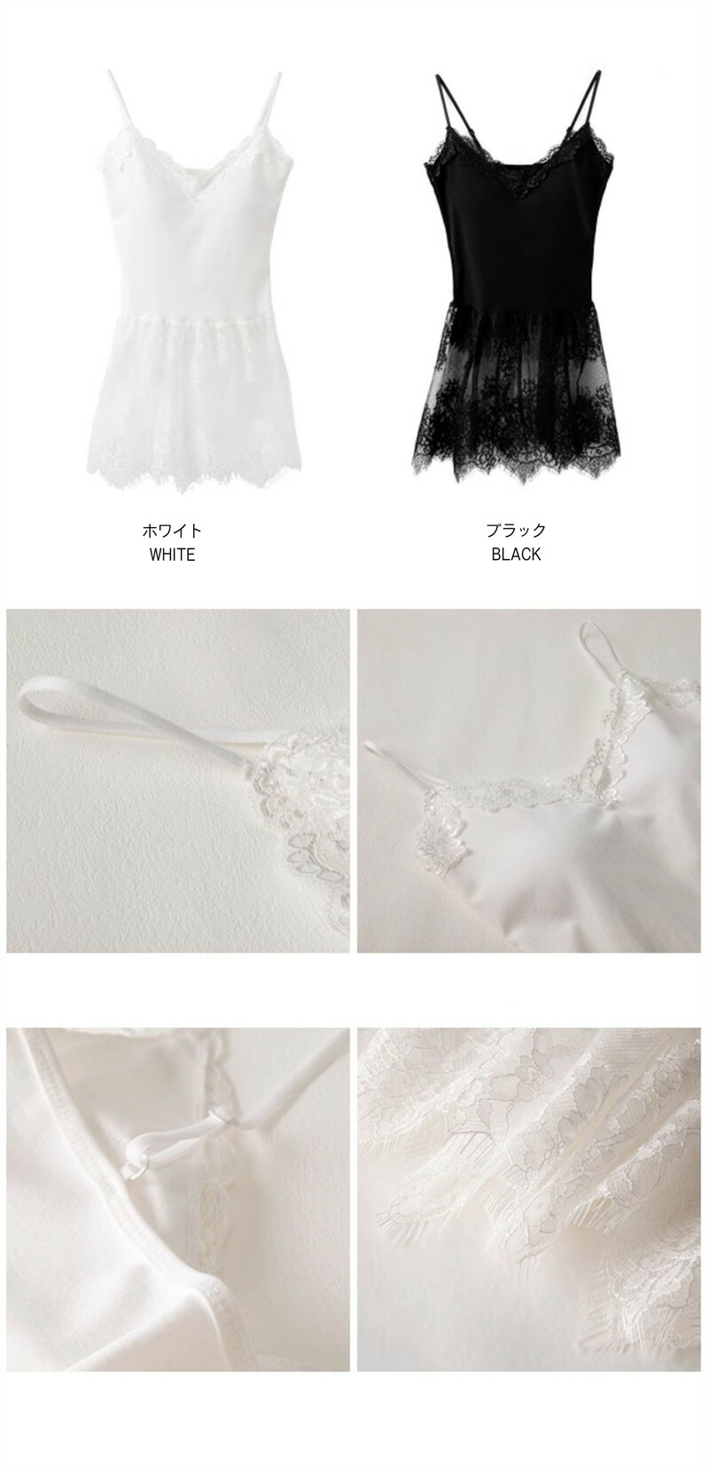 キャミソール レース切り替え 体型カバ レディースファッション 人気 S L ブラック ホワイト