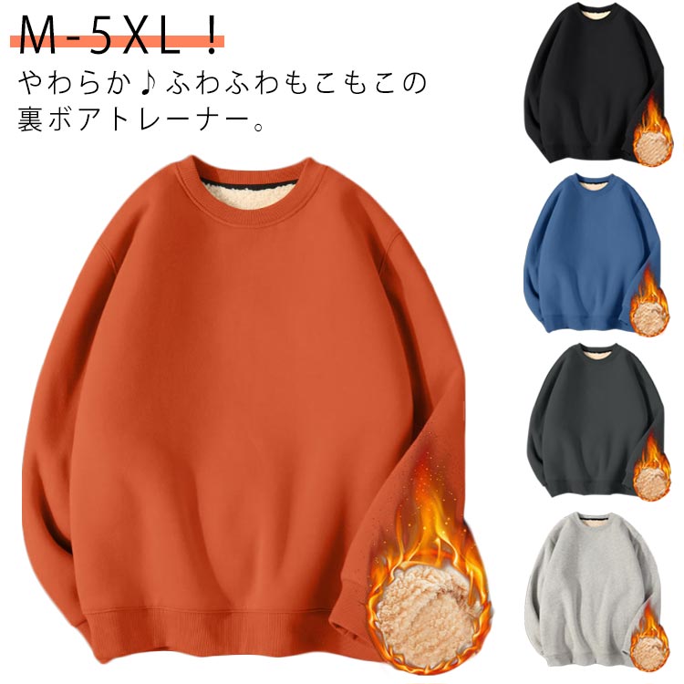 裏ボア スウェット トレーナー メンズ トップス スウェット トレーナー 期間限定ポイントUP! オレンジ ブラック ブルー ダークグレー ライトグレー M L XL 2XL 3XL 4XL 5XL