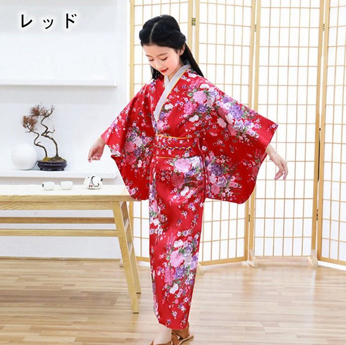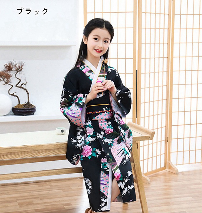 女の子 ドレス 浴衣 和風 着物 和服 ホワイト ブラック ピンク レッド ブルー ネイビー グリーン 100cm 110cm 120cm 130cm 140cm 150cm 160cm 170cm