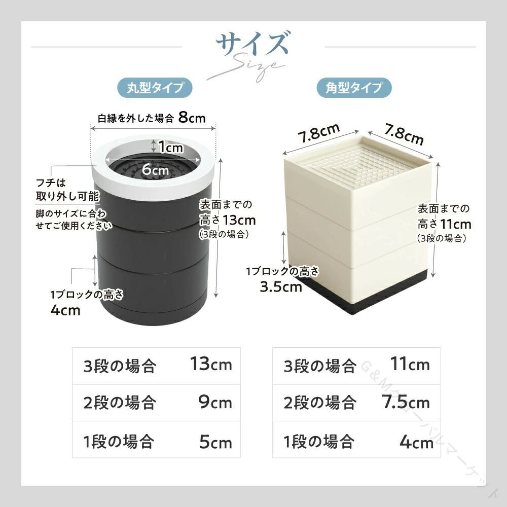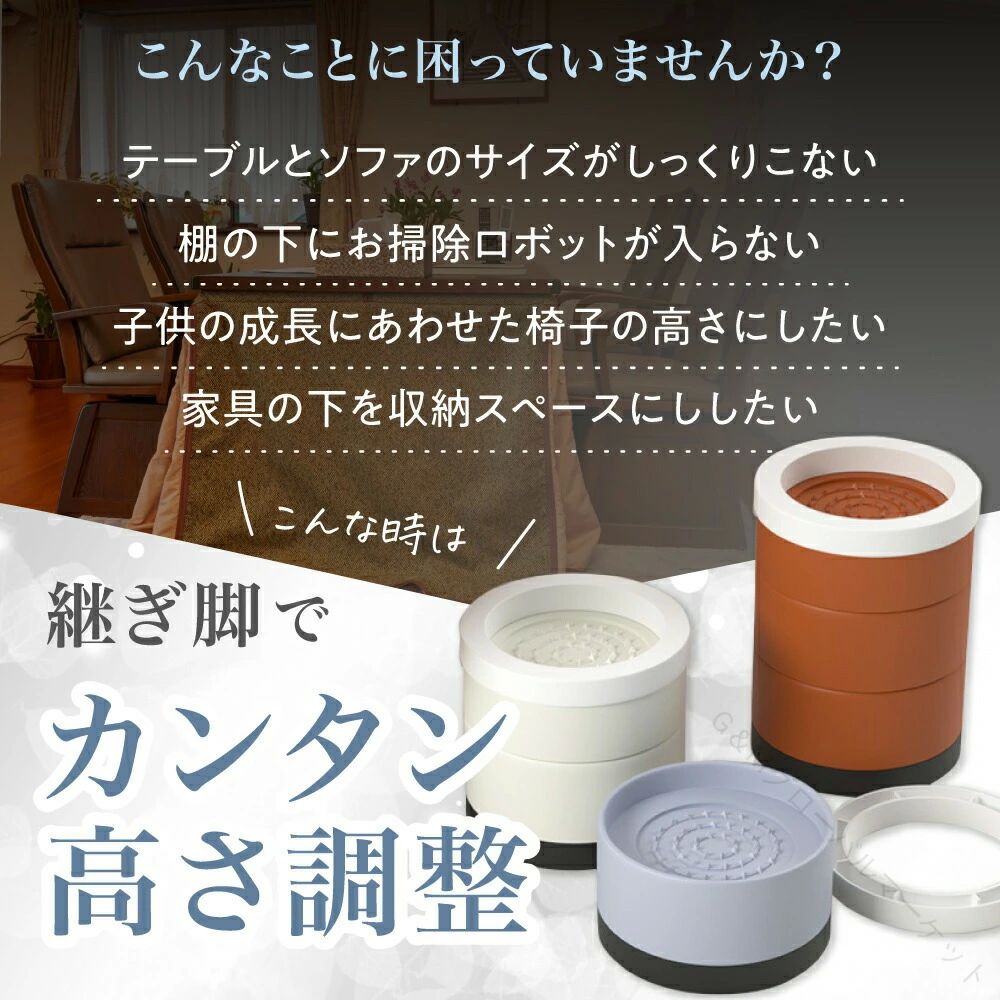 継ぎ脚 継ぎ足 継脚 継足 高さ調整 アイボリー グレー ブラウン ブラック 角型 1段 角型 2段 角型 3段 丸型 1段 丸型 2段 丸型 3段