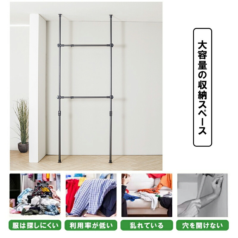 突っ張り式 ハンガーラック つっぱり棒 ブラック ホワイト