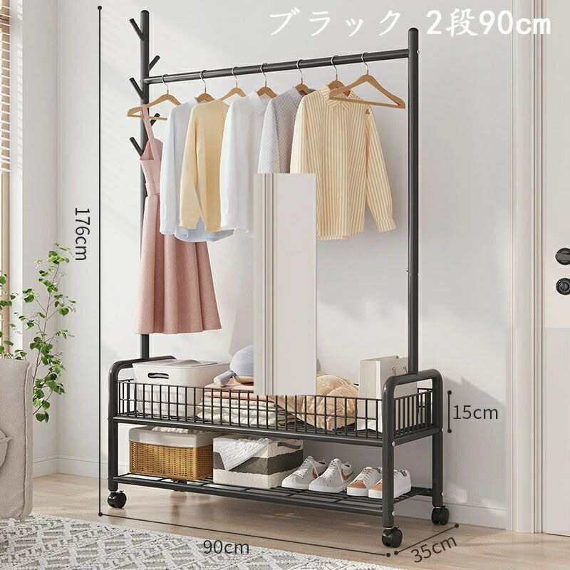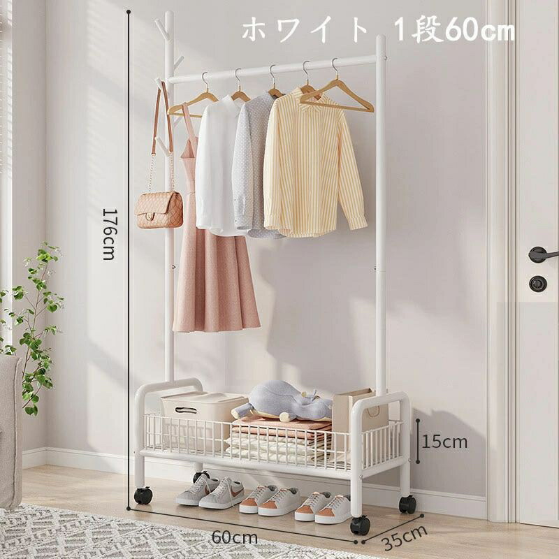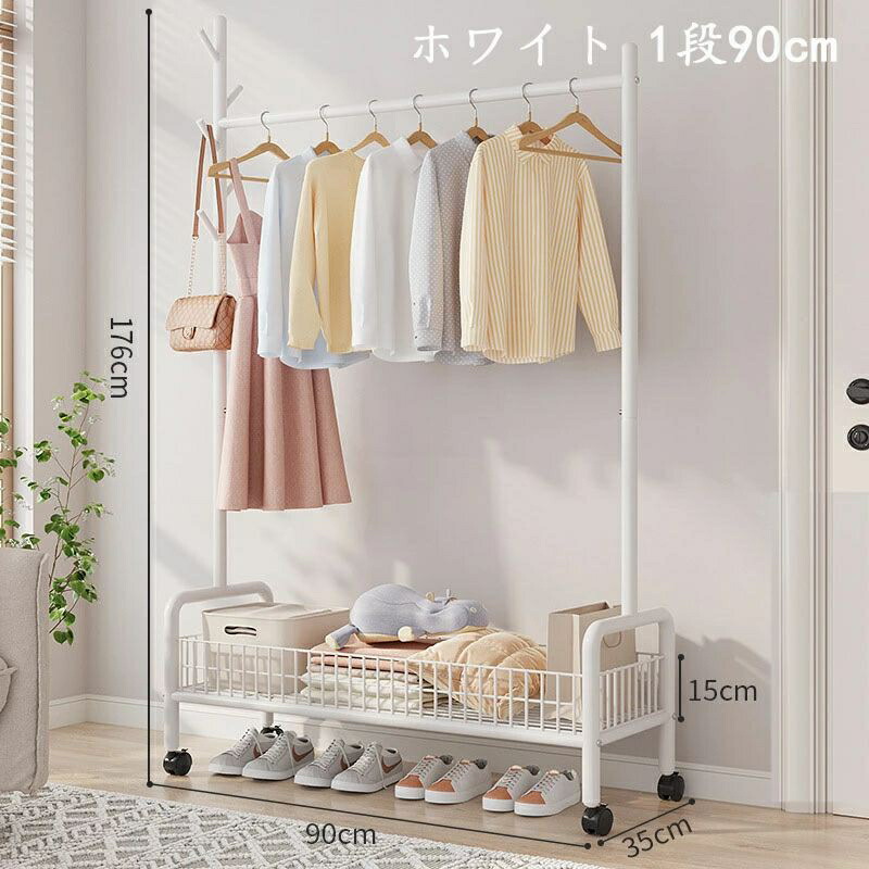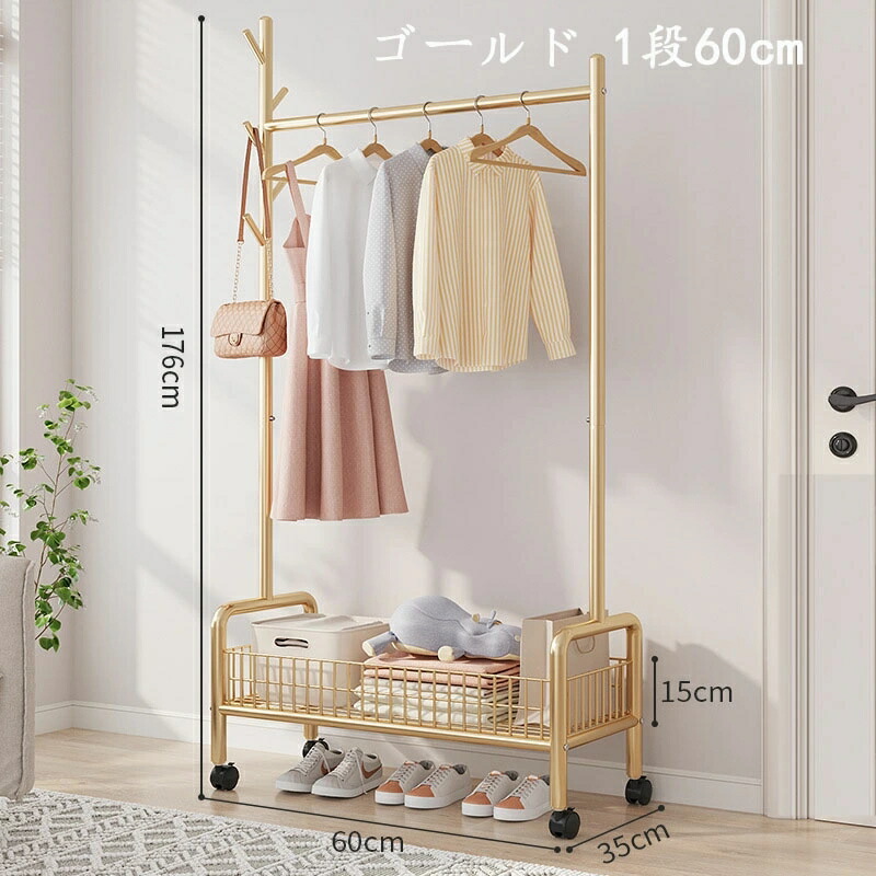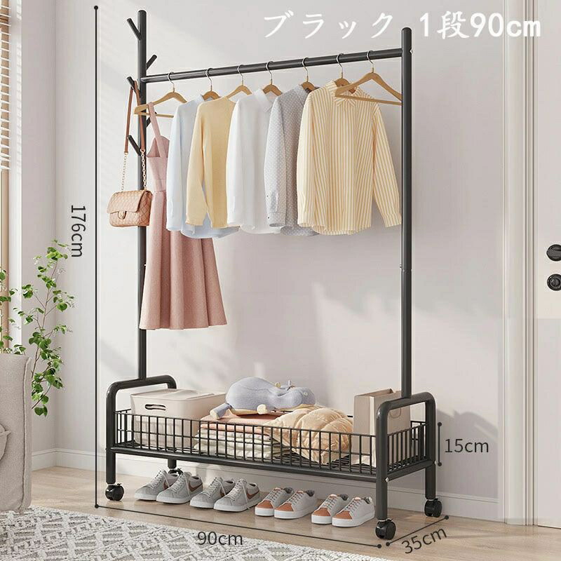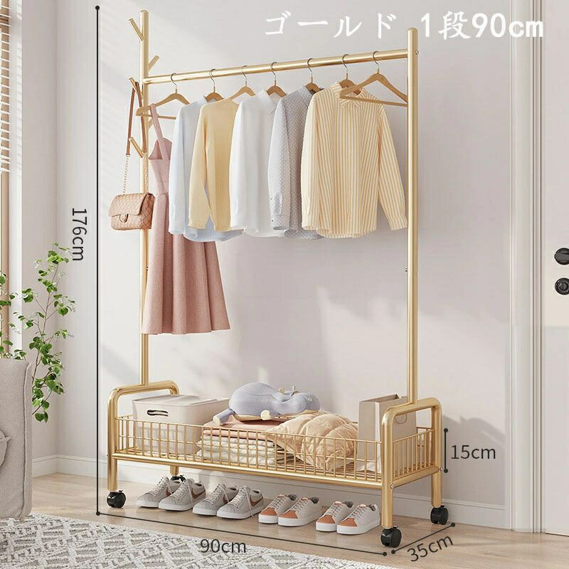 ハンガーラック 頑丈 キャスター付き ブラック ホワイト ゴールド 1段60cm 1段90cm 2段90cm