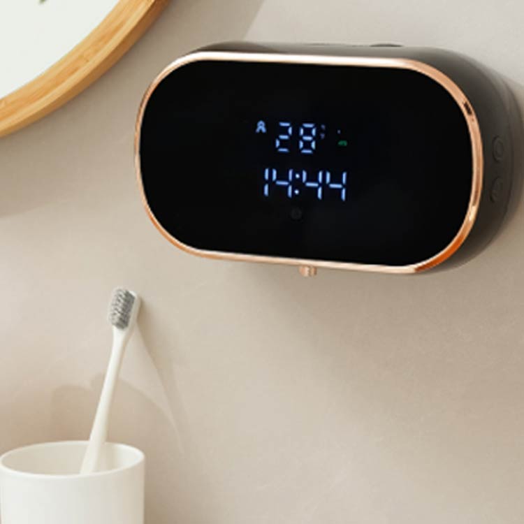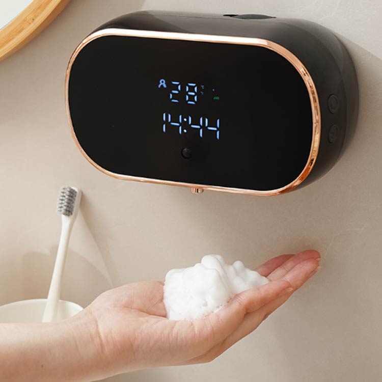 ソープディスペンサー 三段階調節 壁掛け 泡 自動 時間表示 時計機能 誤作動防止 壁かけ 人体感知 子供 大人 室温表示 適用 自動清潔 詰まり防止 IPX5防水 充電式 繰り返 大画面ディスプレイ