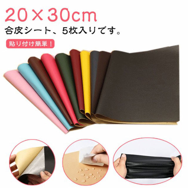 合皮補修シート 合皮 補修シート 5枚 手芸 クラフト 生地 レザークラフト材料 革 人気 レッド ワインレッド オレンジ ライトブルー イエロー ダークパープル グレー ブラック ホワイト ダークブルー ダークグリーン ネイビー ライトブラウン ダークブラウン ベージュ オフホワイト ベージュイエロー ピンク ダークコーヒー ライトレッド
