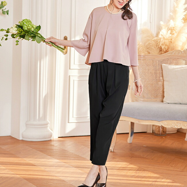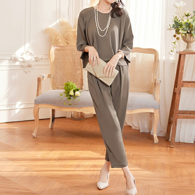 上下セット ブラウス ワイドパンツ レ スーツ セットアップ パンツスーツ 特集 S M L XL 2XL ブラック+ブラック ネイビー+ネイビー ベージュ+ブラック オールドローズ+ブラック ブラウン+ブラウン