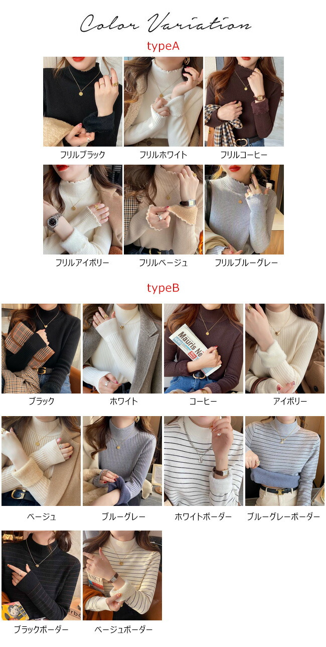 裏起毛ニット 裏起毛 ハイネック ニッ レディースファッション 豊富 フリルブラック フリルホワイト フリルコーヒー フリルアイボリー フリルベージュ フリルブルーグレー ブラック ホワイト コーヒー アイボリー ベージュ ブルーグレー ホワイトボーダー ブルーグレーボーダー ブラックボーダー ベージュボーダー
