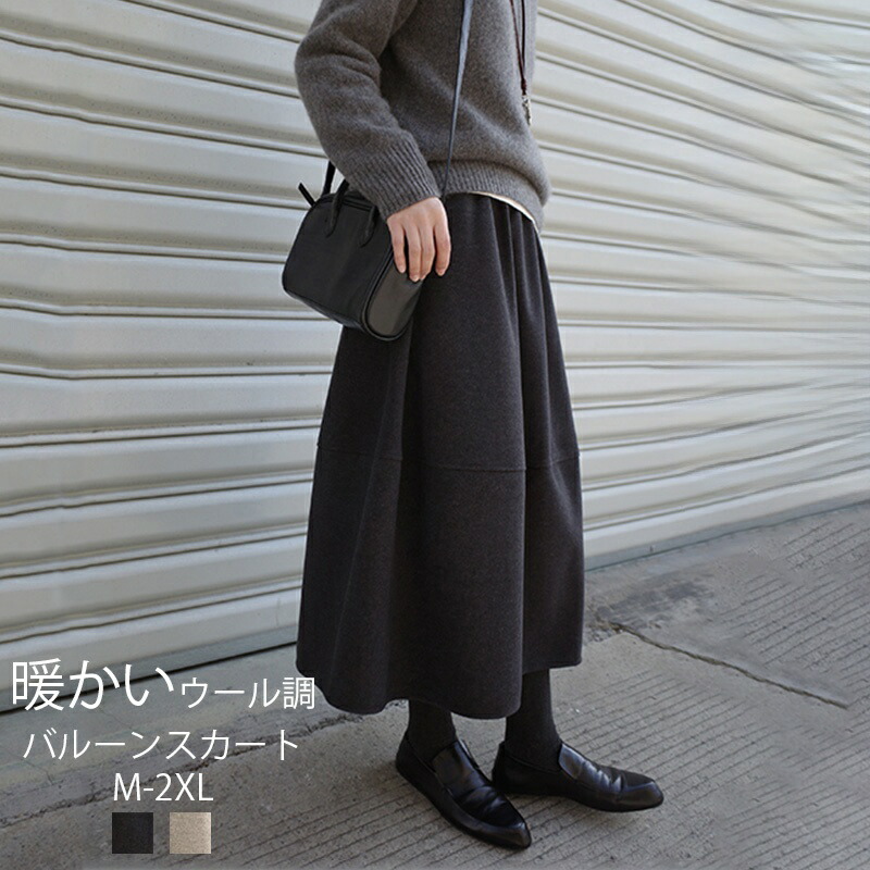 バルーンスカート ロング 50代 コク ボトムス スカート 人気 ブラック ベージュ M L XL 2XL