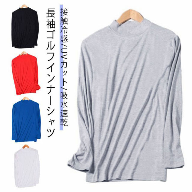 接触冷感 モックネック UVカット 夏 ゴルフ ウェア メンズウェア アンダーウェア 早い者勝ち!ポイントUP ホワイト グレー ブラック レッド ネイビー S M L XL 2XL 3XL 4XL 5XL
