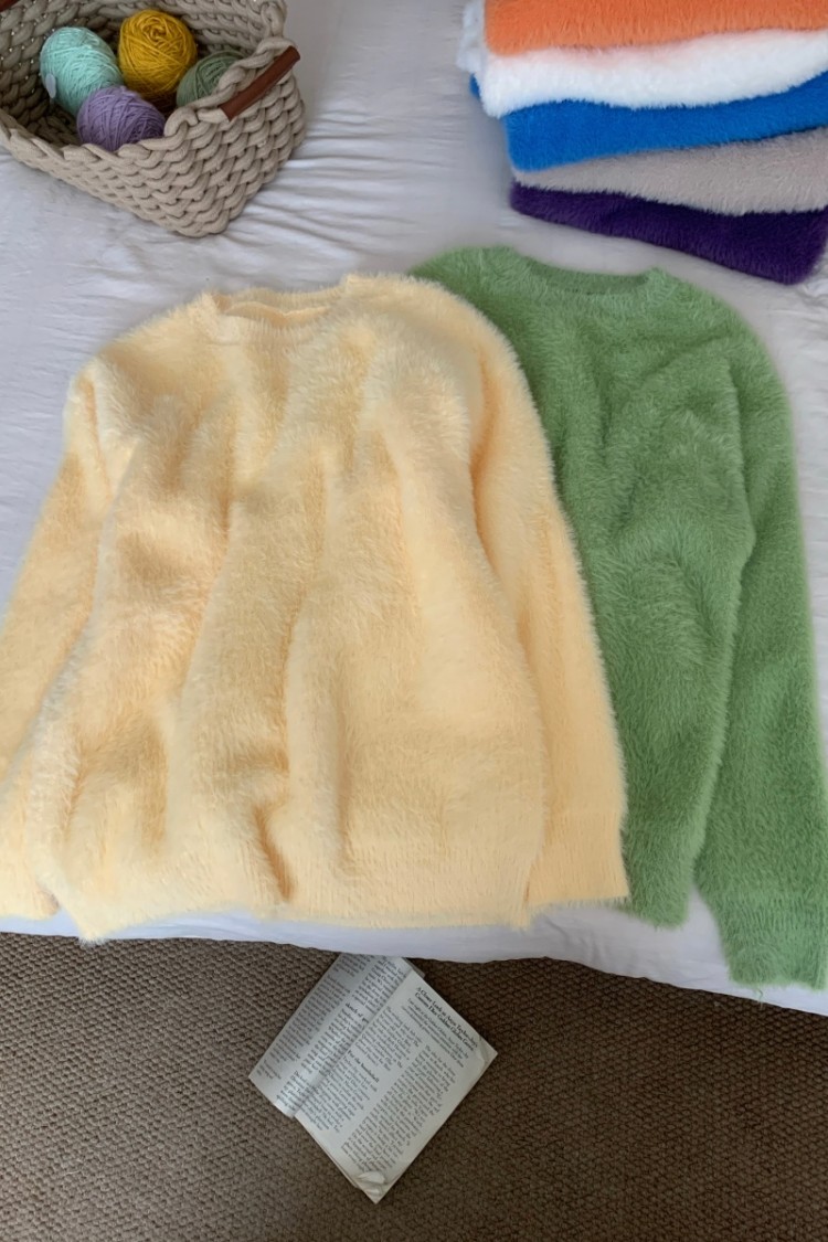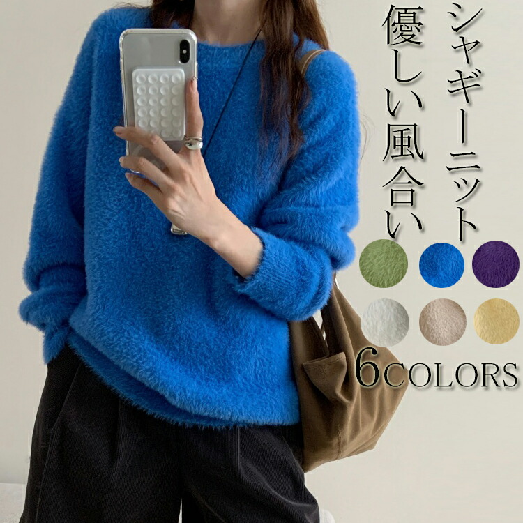 フェザーヤーン ニット セーター シャ レディースファッション 豊富 黄色 グリーン ホワイト ネイビー ベージュ 紫色