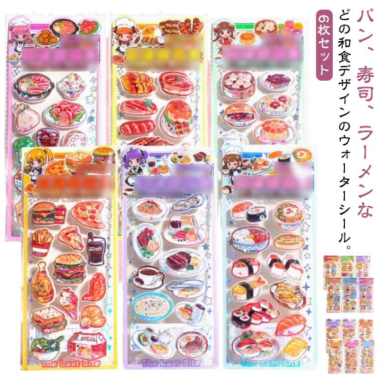 水入りシール 和風 6枚入り 女の子 和食 寿司 食べ物 パン ぷっくりシール ウォーターインシール おやつ ウォーターシール シール帳 シャカシャカシール 3D デコシール ぷくぷくシール 立 立体