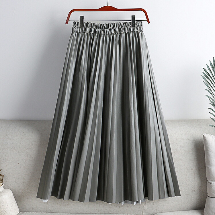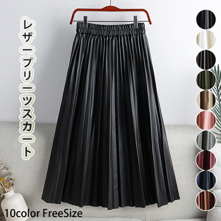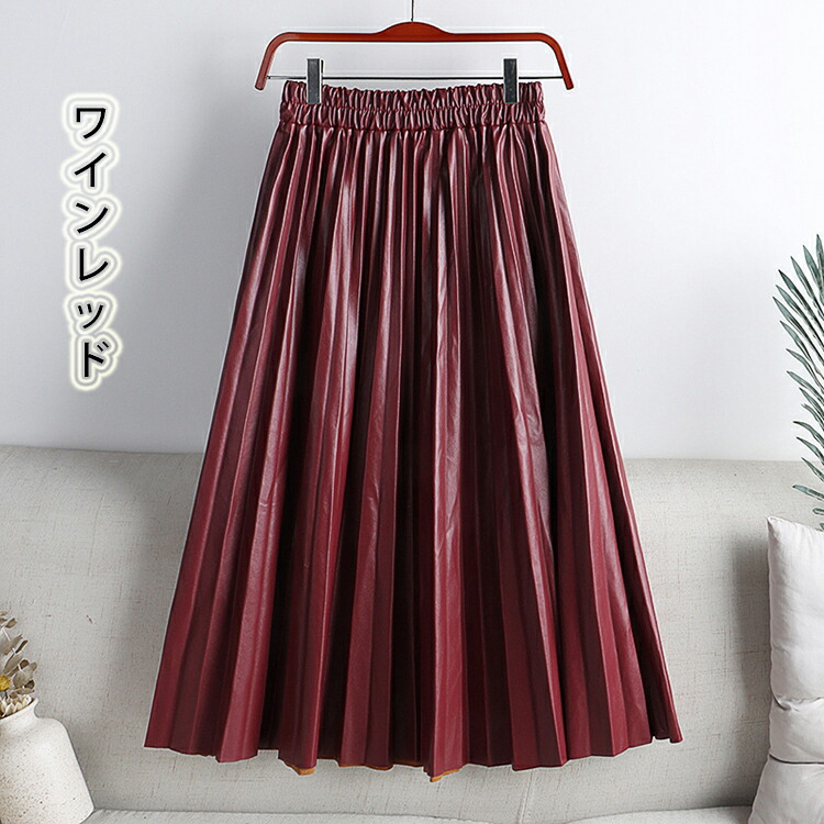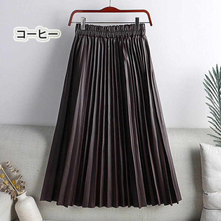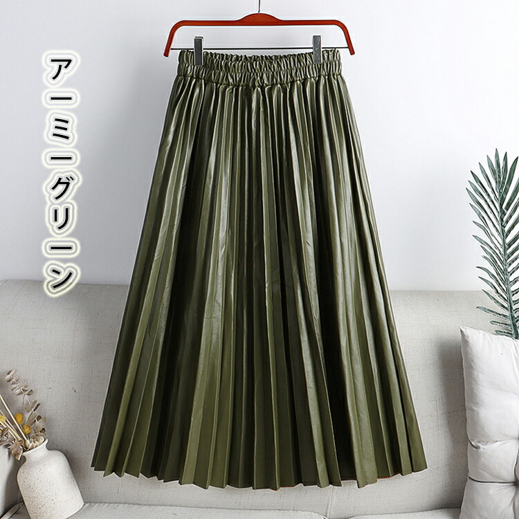 レザー プリーツスカート ロング フェ ボトムス スカート 特集 ホワイト ブラック コーヒー アーミーグリーン ピンク 杏色 グレー ワインレッド 紺色 カーキ
