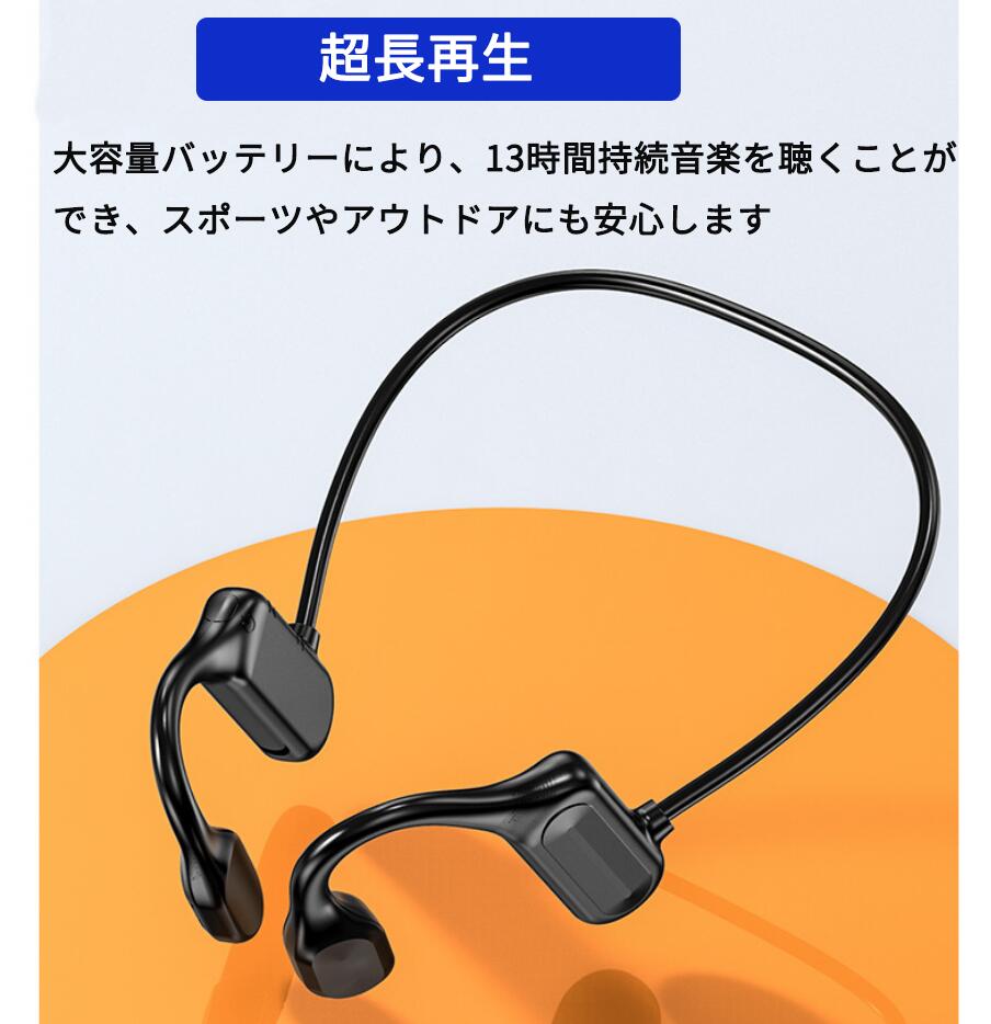 180mAhの大容量バッテリーを搭載した骨伝導イヤホンで、一度の充電で200時間待機または13時間の連続音声通話の使用が可能ですので、(音量の大きさにより連続使用時間が変化する場合ございます)。バッテリー残量を気にすることなく、音楽、通話、オーディオブック、ポッドキャストなどを聴くことができます。注意:イヤホンから電力不足を示された場合は、速やかに充電してください。電力不足はイヤホンの性能に影響を与え、通信距離が短くなったり、音が途切れたりするなどの問題を引き起こす可能性があります。