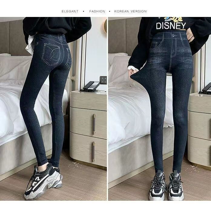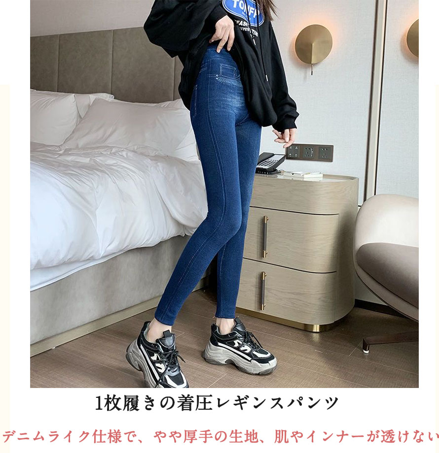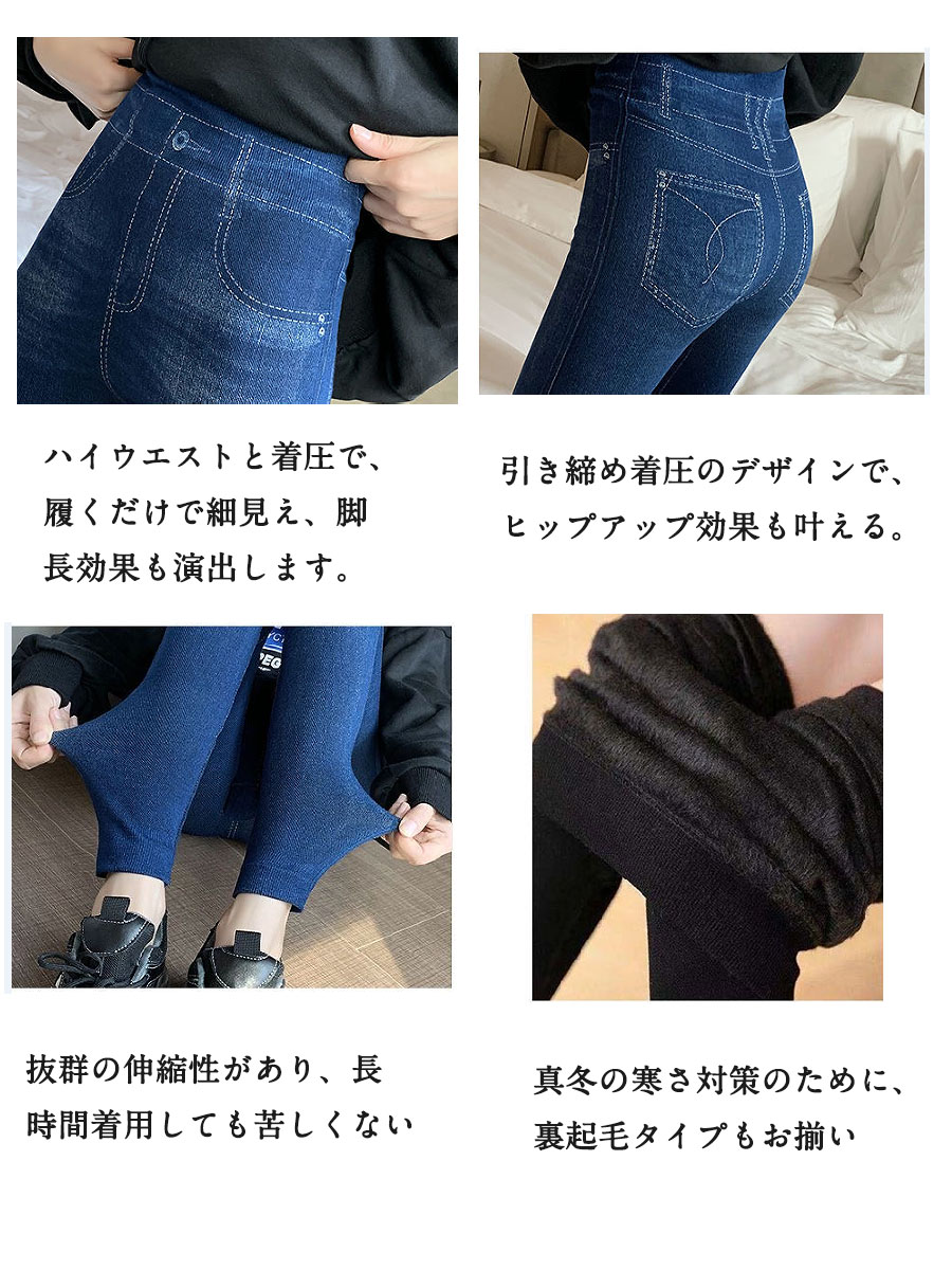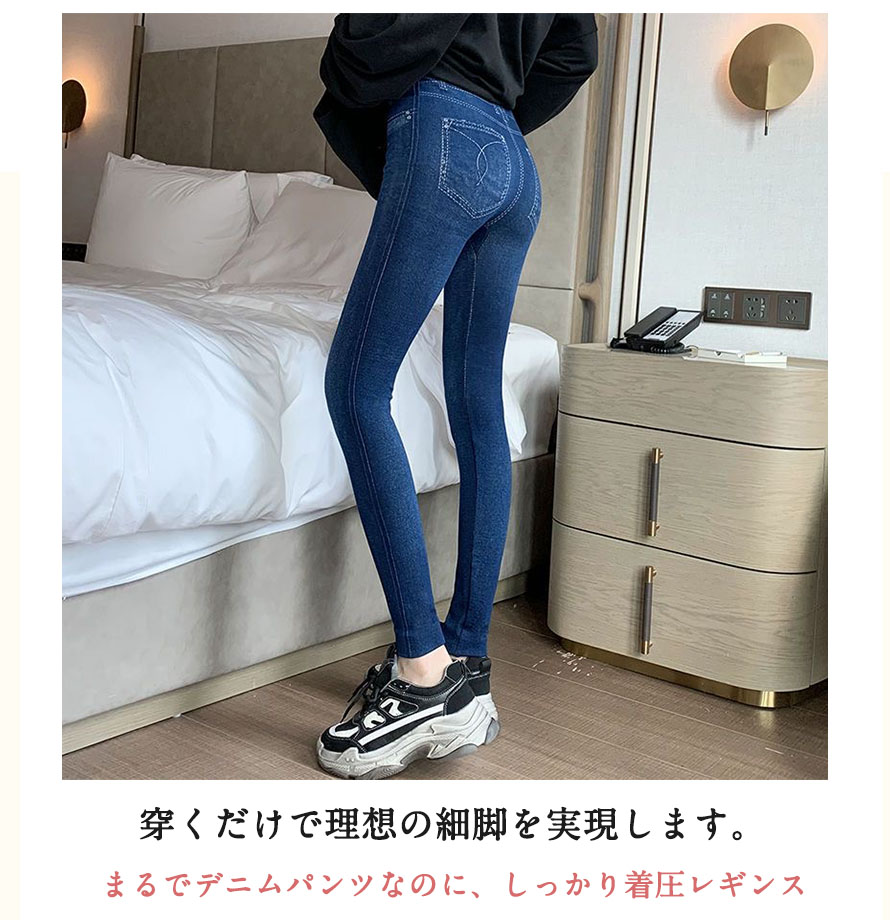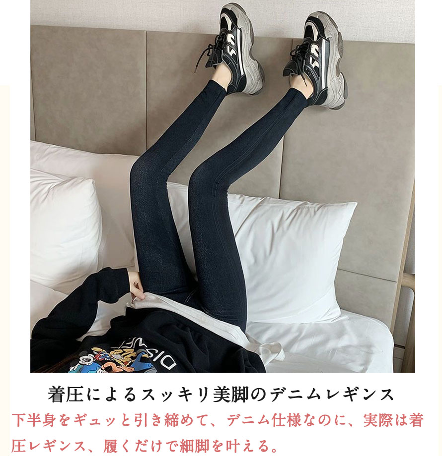 52%OFF着痩せ 着圧デニム レギン インナー 下着 ナイトウエア 新作 裏起毛なし 裏起毛あり ブラック ブルー