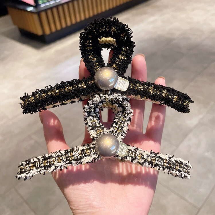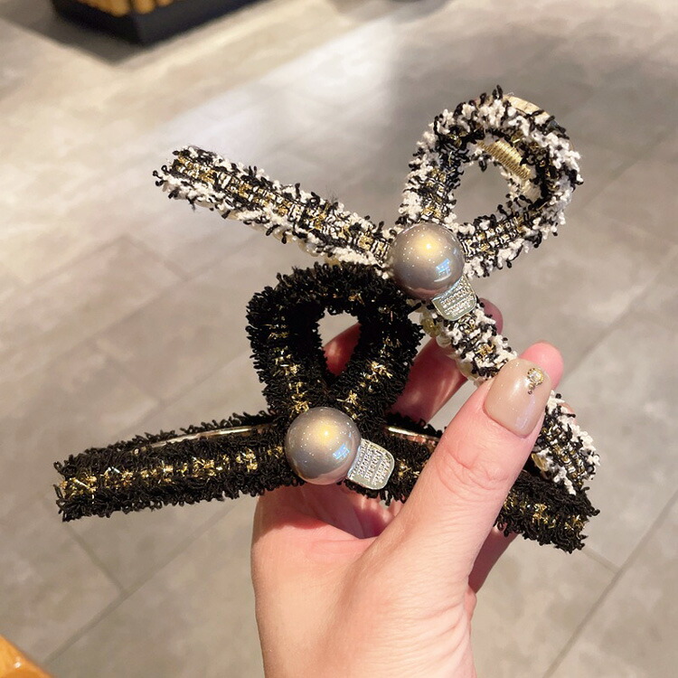 ヘアクリップ 全2色 ツイード風 パー レディースジュエリー アクセサリー ヘアアクセサリー ヘアクリップ 人気 ブラック アイボリー