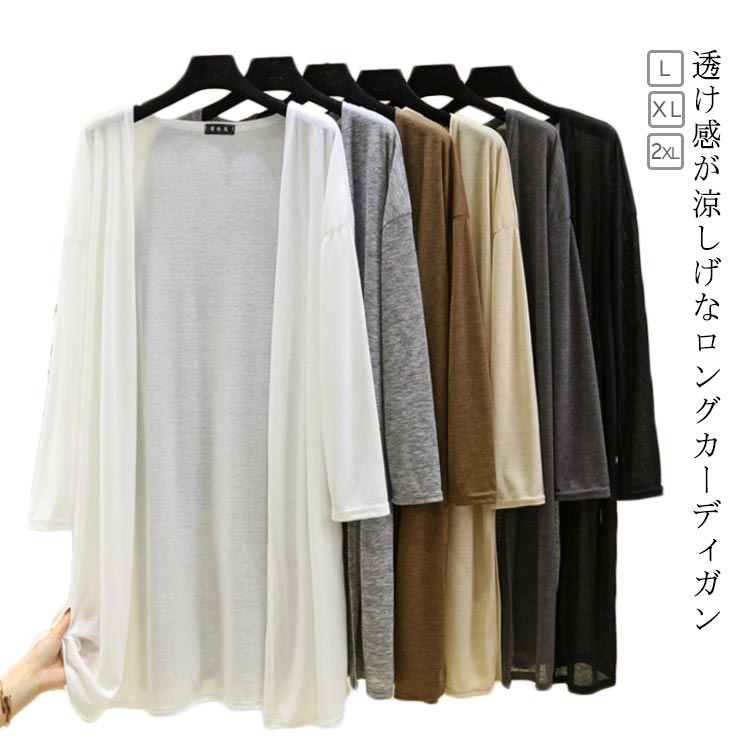 UVカット リネン混 ロングカーディガ トップス カーディガン ボレロ 続々入荷中 ブラック ホワイト ベージュ ブラウン グレー ダークグレー L XL 2XL