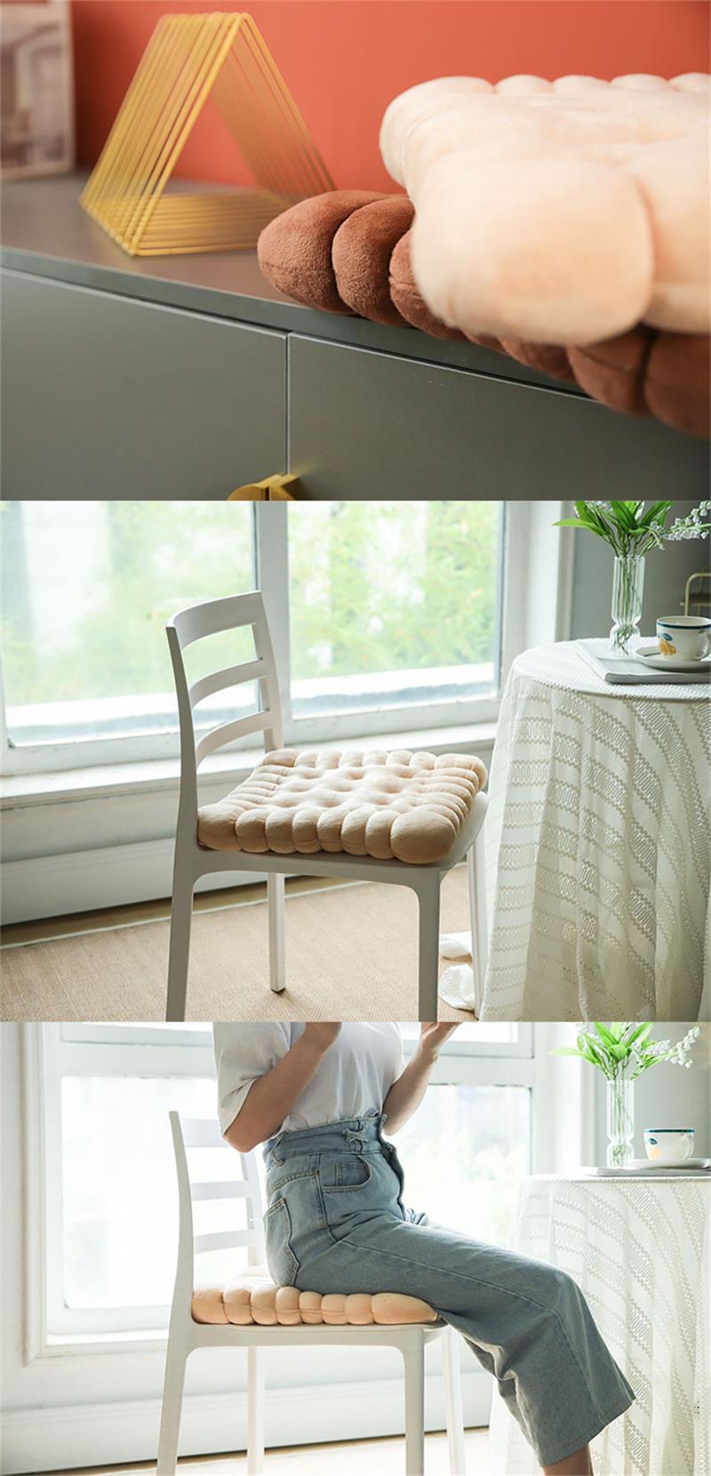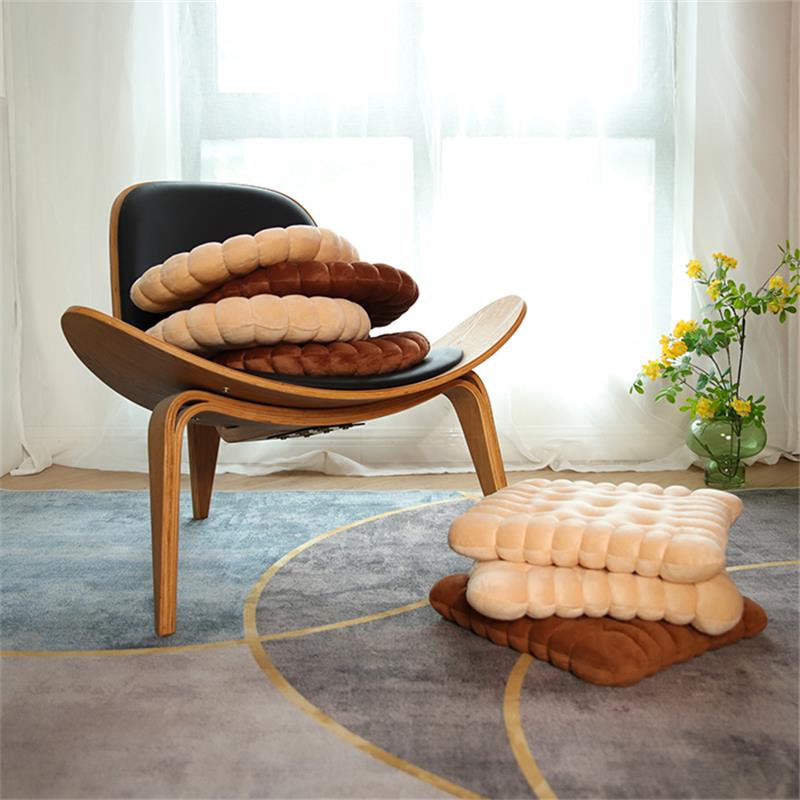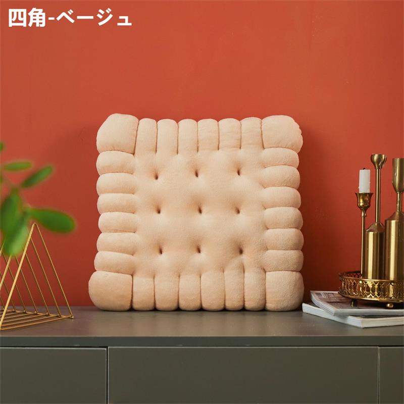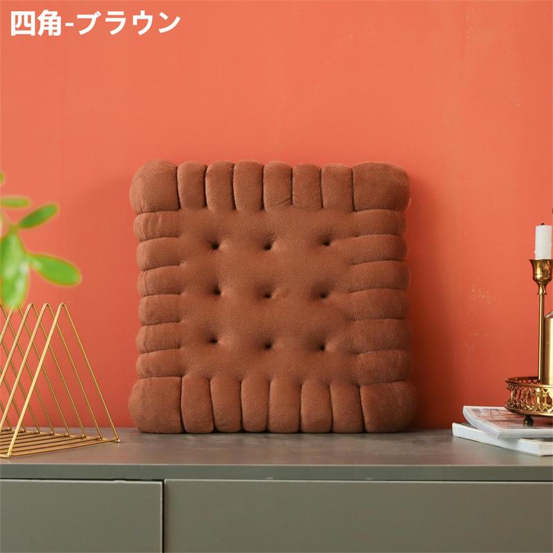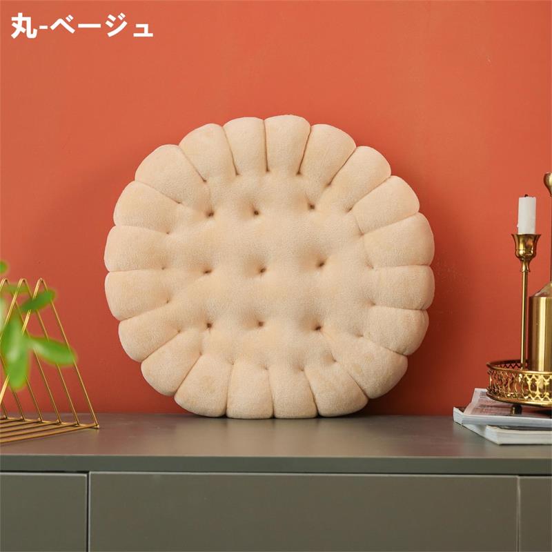座布団 クッション ビスケットクッショ ベージュ コーヒー 円形 正方形