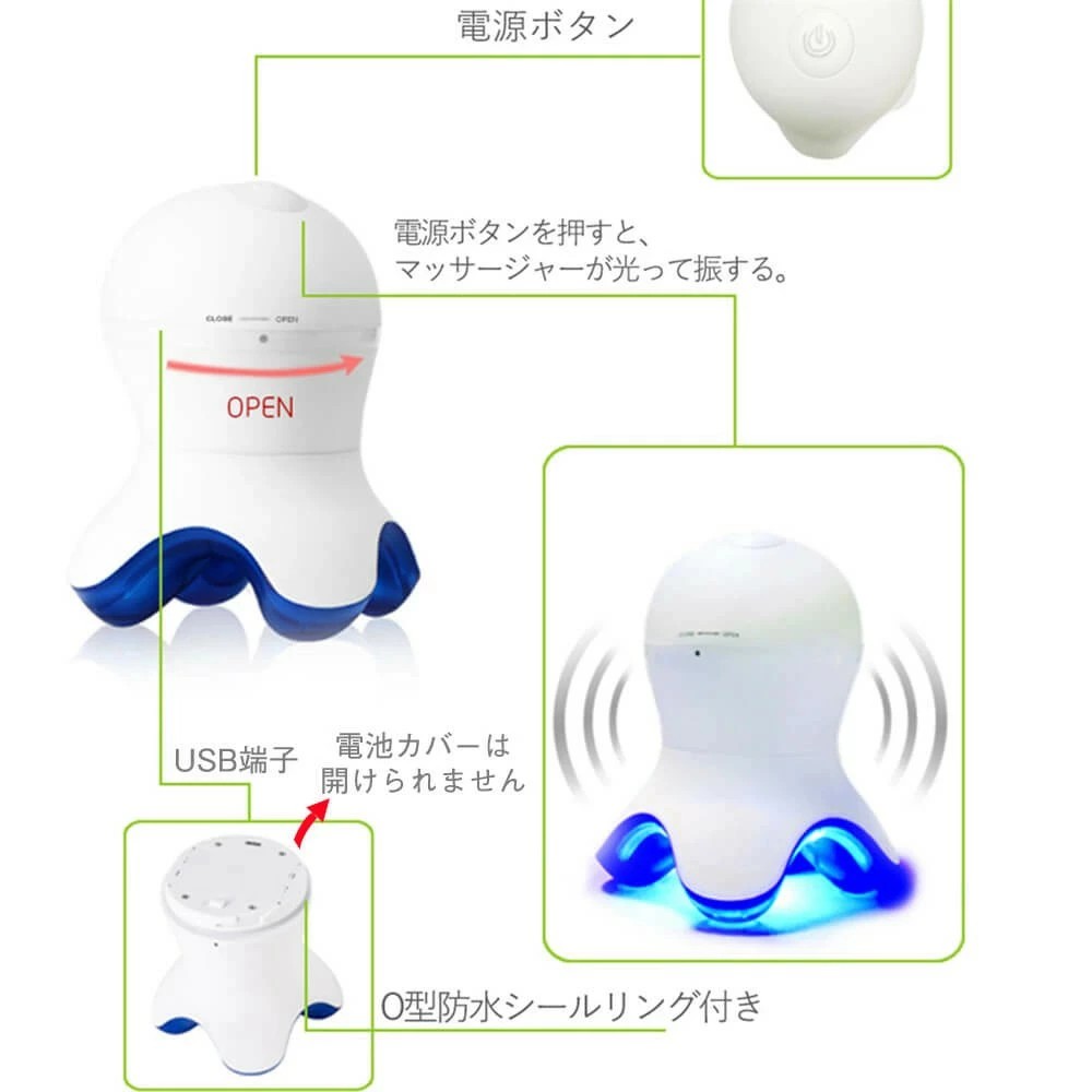 電マ 強力 振動 ミニ マッサージ器 ホワイト ブルー