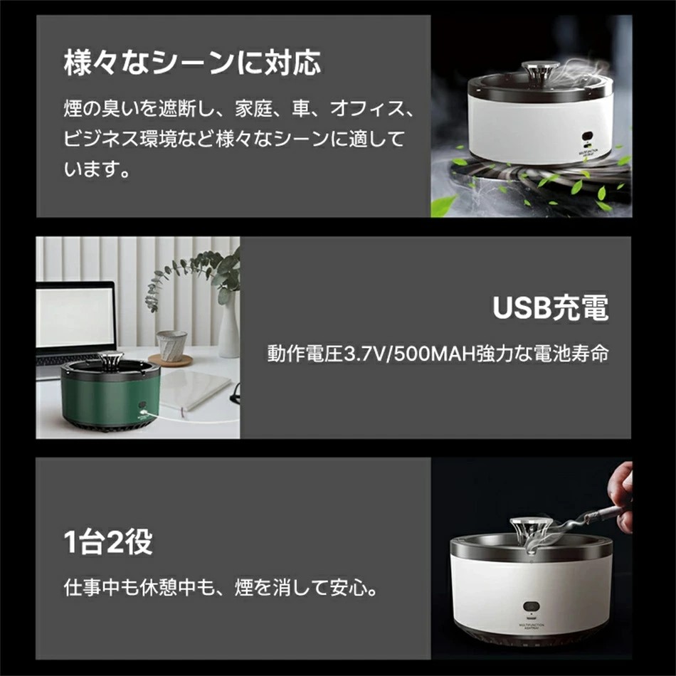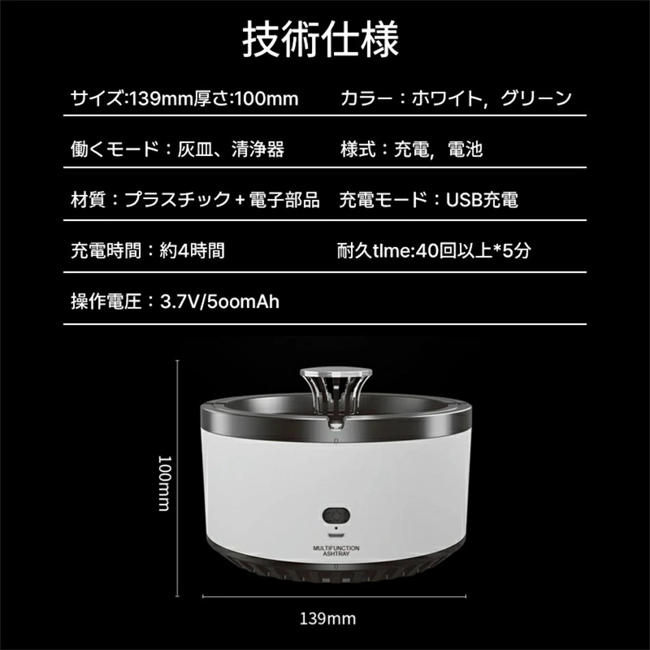 空気清浄用灰皿 空気清浄機 煙草 タバ 喫煙具 携帯灰皿 期間限定割引クーポン グリーン ホワイト 電池タイプ 充電タイプ
