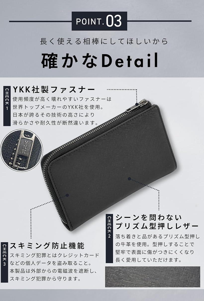 「YKK製ファスナーを採用」長財布の多いとされる故障がファスナー不良。