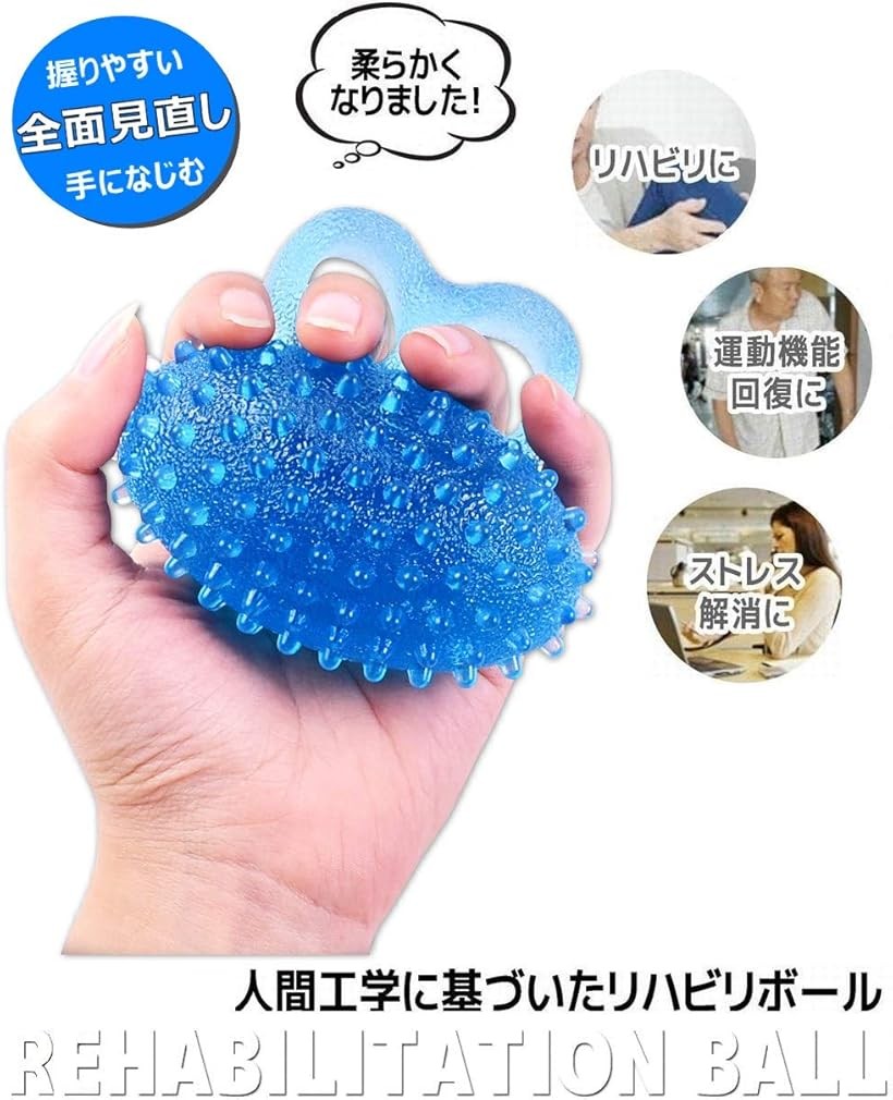 リハビリ ボール 手 指 握力強化 道具 トレーニング グッズ 脳卒中 脳梗塞 介護 改良型 ブルー