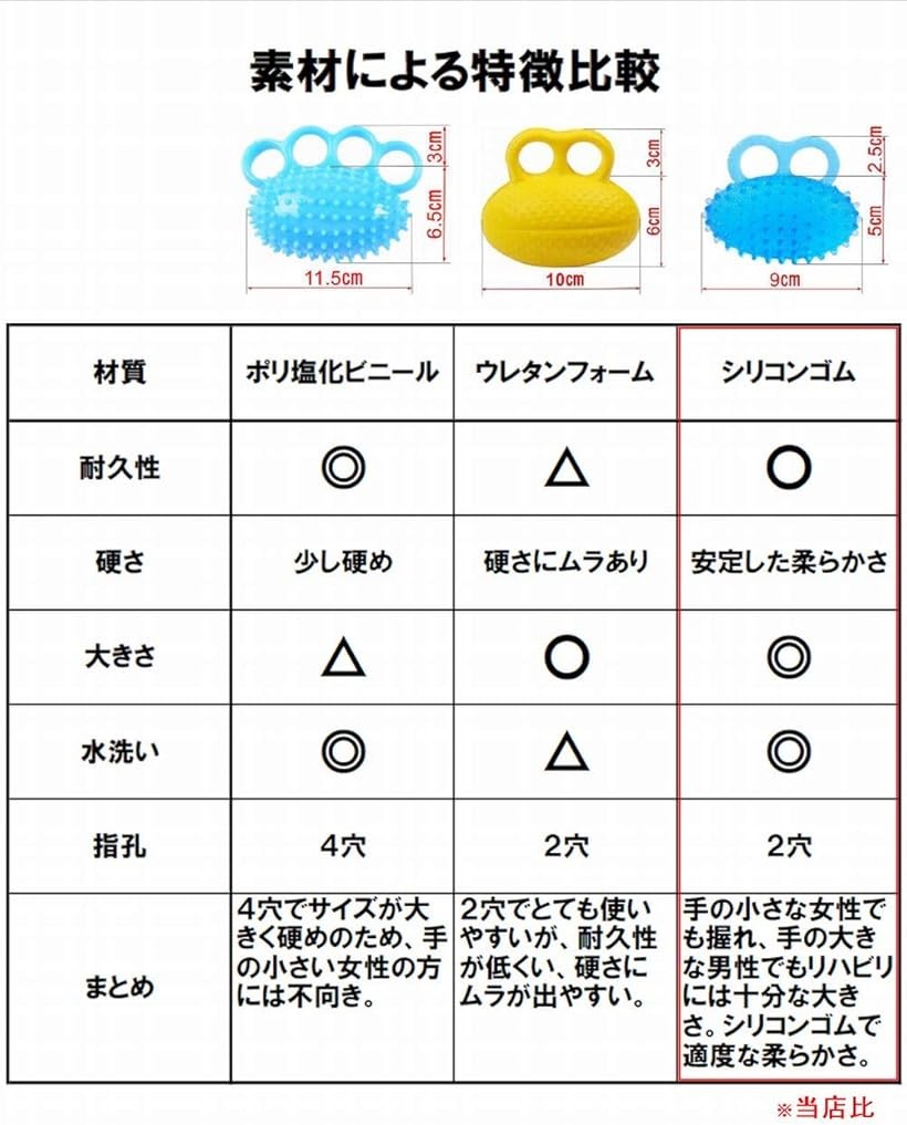 ・一般の方の握力強化、スポーツトレーニング、リュウマチなどの指の体操、介護でのエクササイズにもお使い頂けますし、拘縮(こうしゅく)予防対策にも使え、水洗い可能なので清潔に保ち長く使い続けられます。