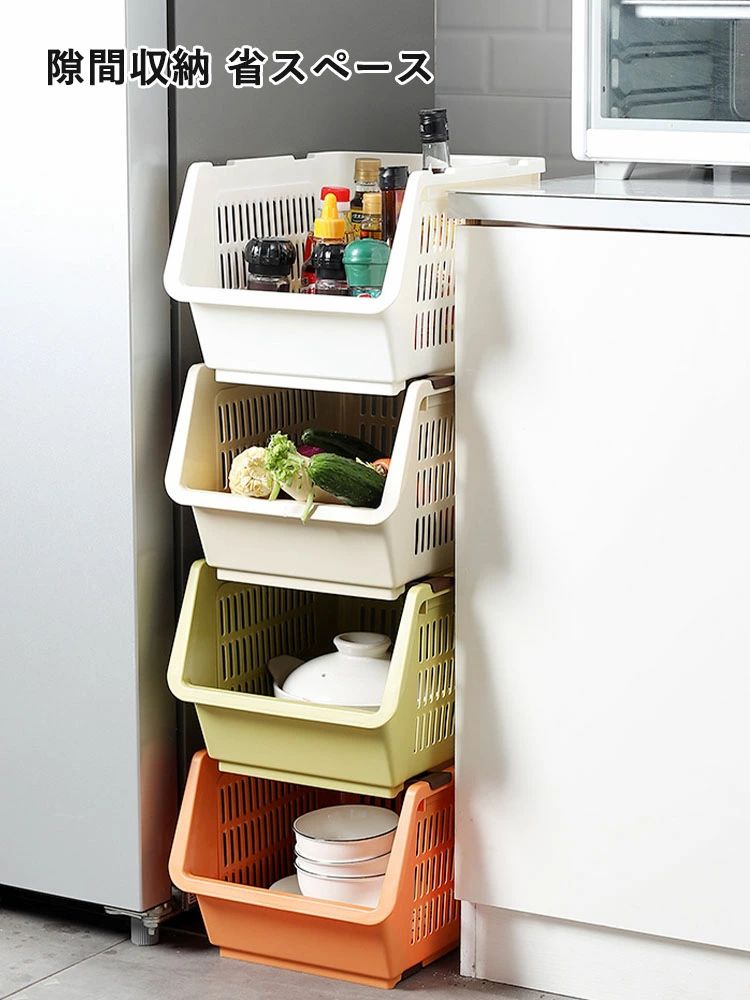 積み重ねバスケット 積み重ねラック 野 ホワイト4個 オレンジ4個 グリーン4個 ベージュ4個 4色各1個 ホワイト2個+オレンジ2個 ホワイト2個+グリーン2個 ホワイト2個+ベージュ2個 オレンジ2個+グリーン2個 オレンジ2個+ベージュ2個 グリーン2個+ベージュ2個 自由に組み合わせる4個 M L