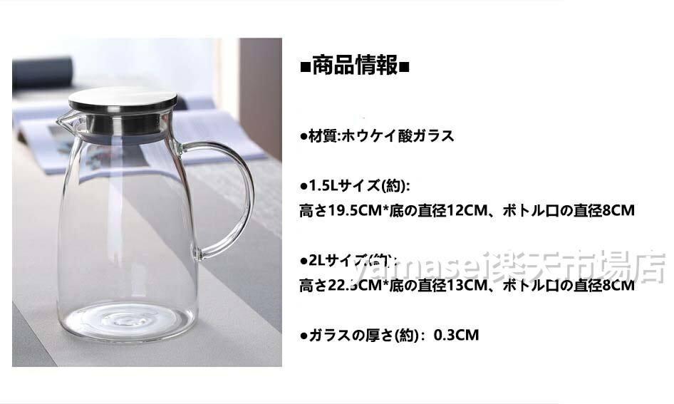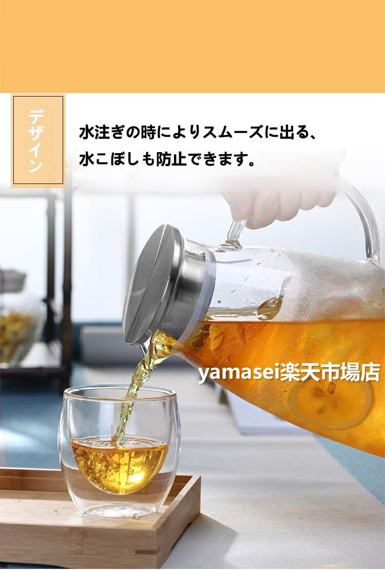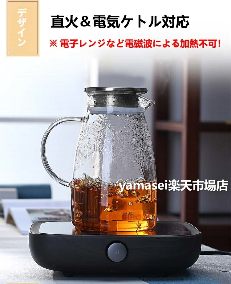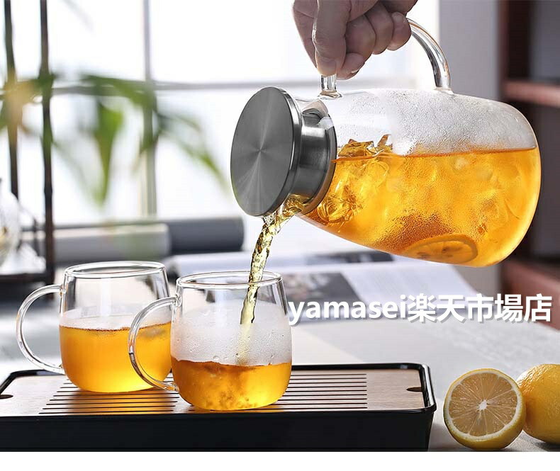 ティーポット 耐熱ガラス 麦茶ポット コーヒー お茶用品 ピッチャー 冷水筒 豊富 1.5Lステンレス蓋 2Lステンレス蓋 1.5L木製蓋 2L木製蓋