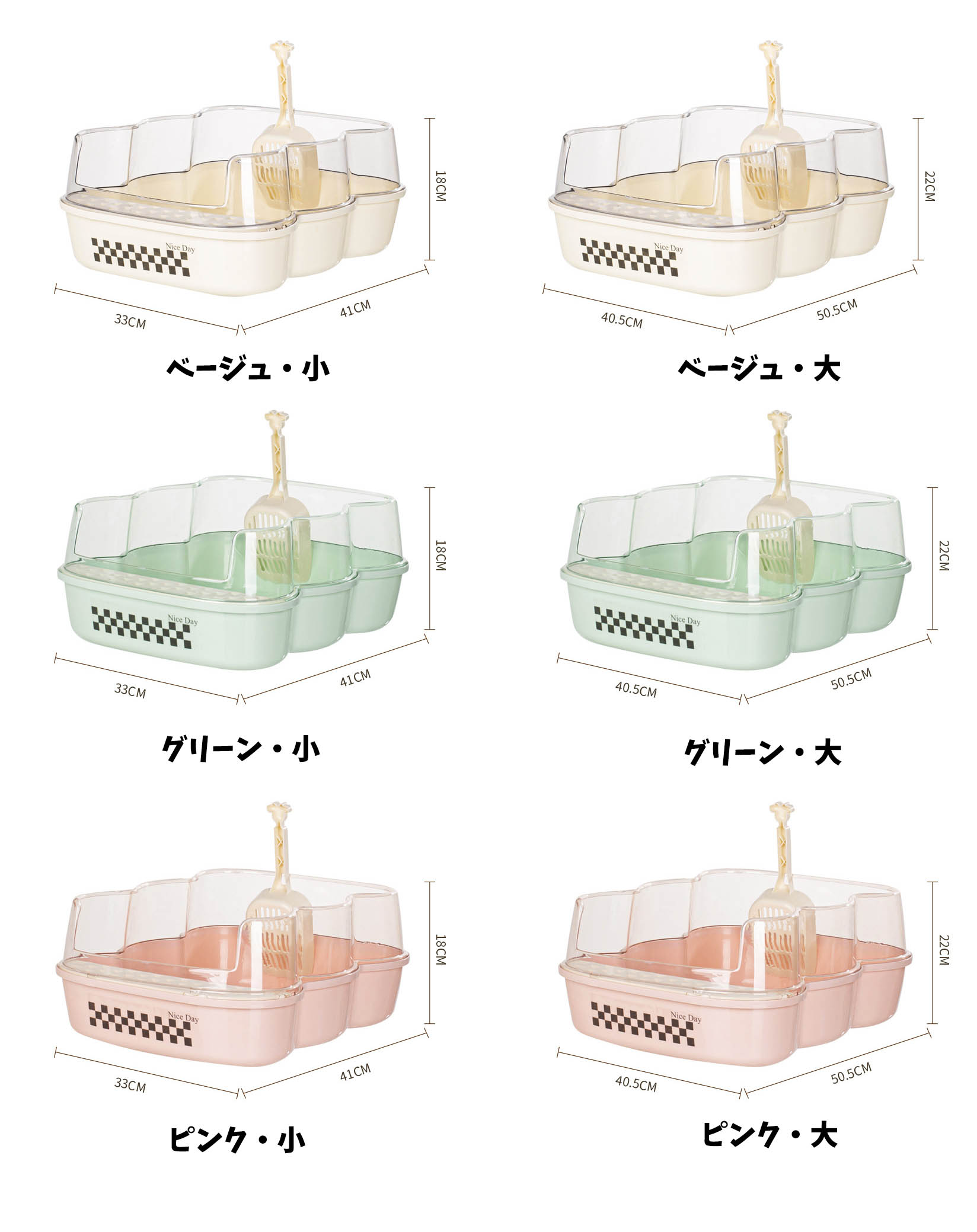 猫 トイレ 猫トイレ キャットトイレ ペット ペットグッズ 続々入荷中 小・33*41*18cm 大・40.5*50.5*22cm ベージュ ピンク グリーン