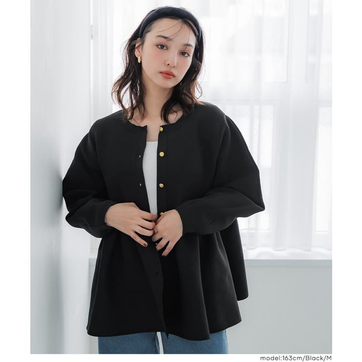 顔周りはすっきりとしたノーカラーデザイン。