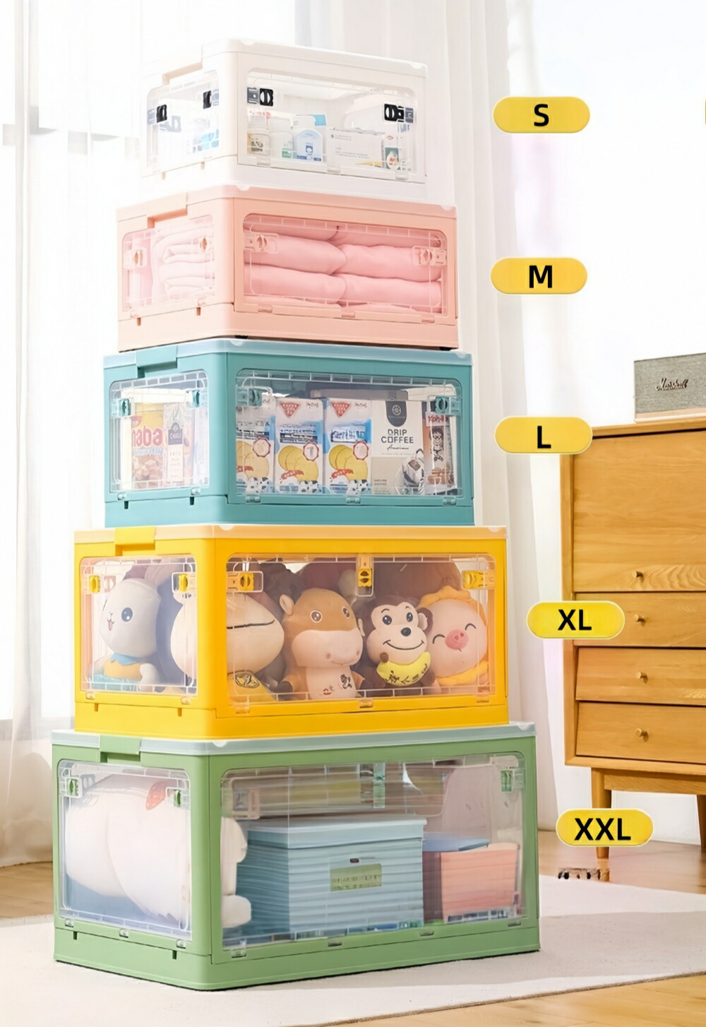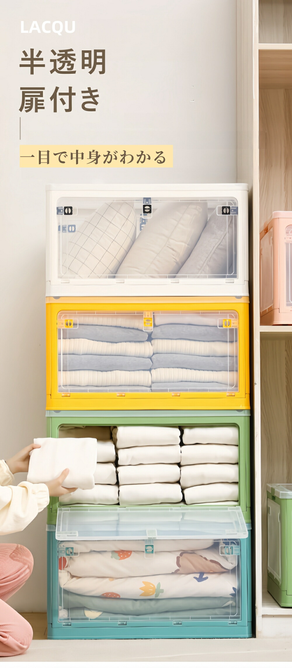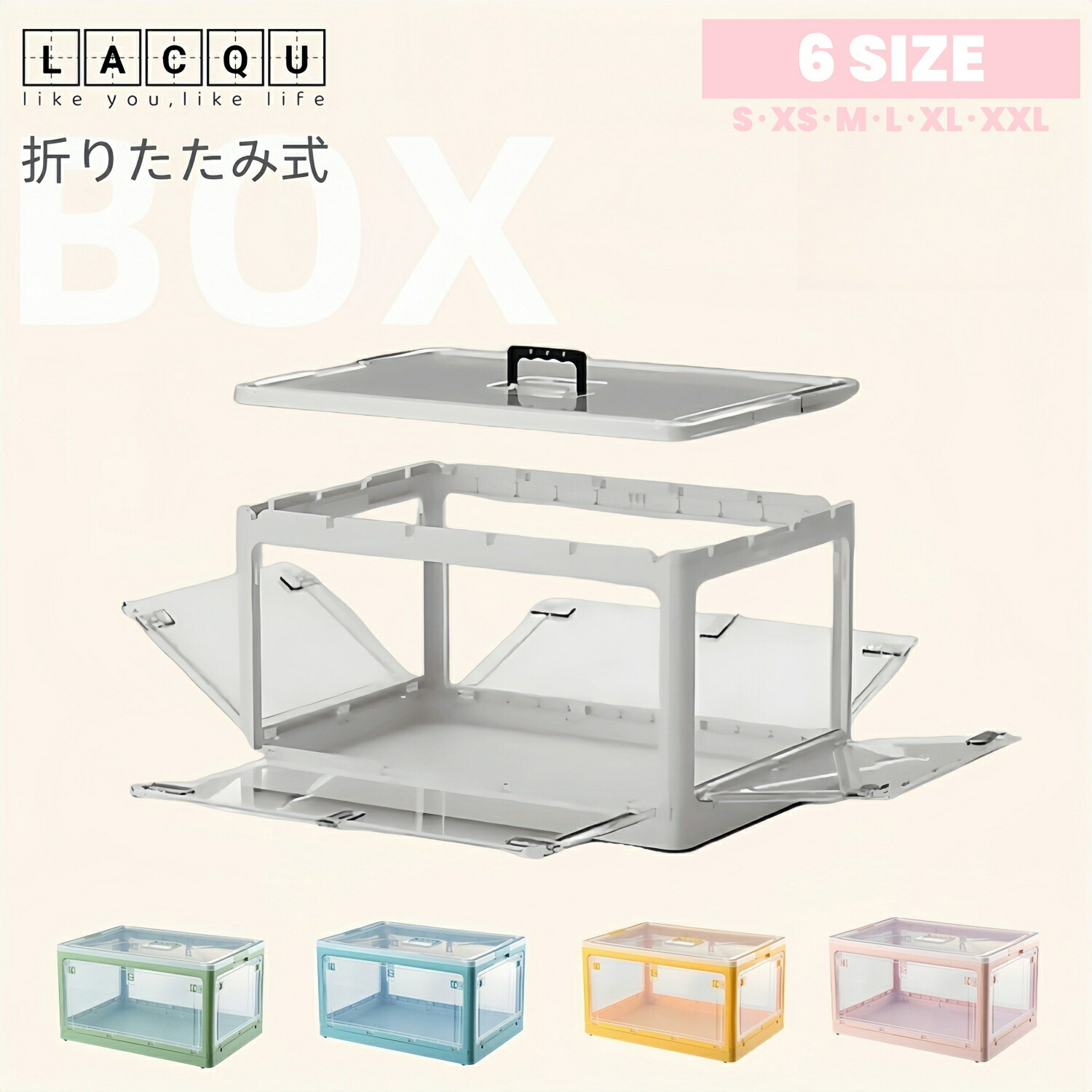 収納ボックス 折りたたみ 高品質 5面 S-28L(40.5*29*24cm) M-40.5L(47*35*24.5cm) L-56L(51.5*36.5*30.5cm) XL-88L(61.5*42*34.5cm) XXL-120L(66*46.5*37.5cm) ホワイト ピンク グリーン イエロー ブルー