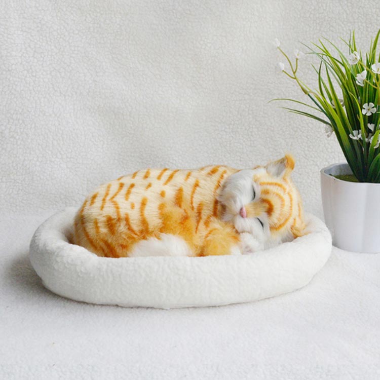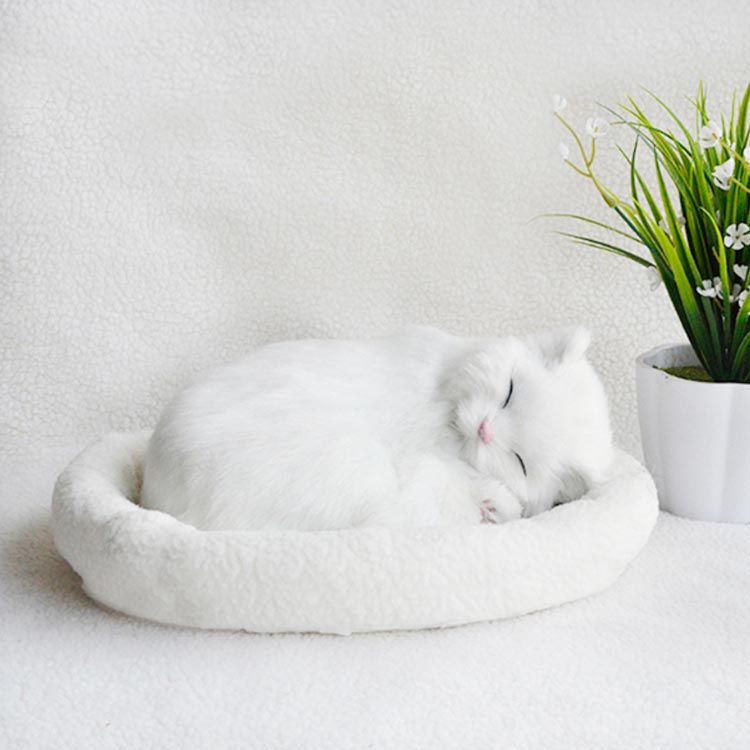 呼吸して眠るリアルな猫のぬいぐるみ ねこ ぬいぐるみ リアル 本物 そっくり ペット すやすや眠る お腹が上下する 動く ペットロス ベッド付き アレルギー 動物 アニマル 子供 癒し