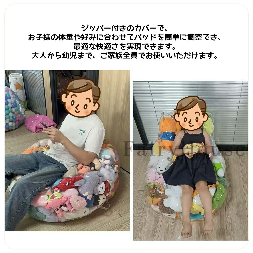 透明 ぬいぐるみチェア 椅子 収納袋 アーム付き(S) アーム付き(M) アーム付き(L) L型 円型 楕円型(S) 楕円型(L)