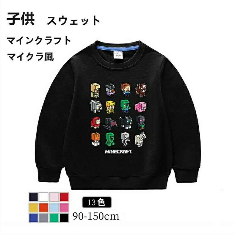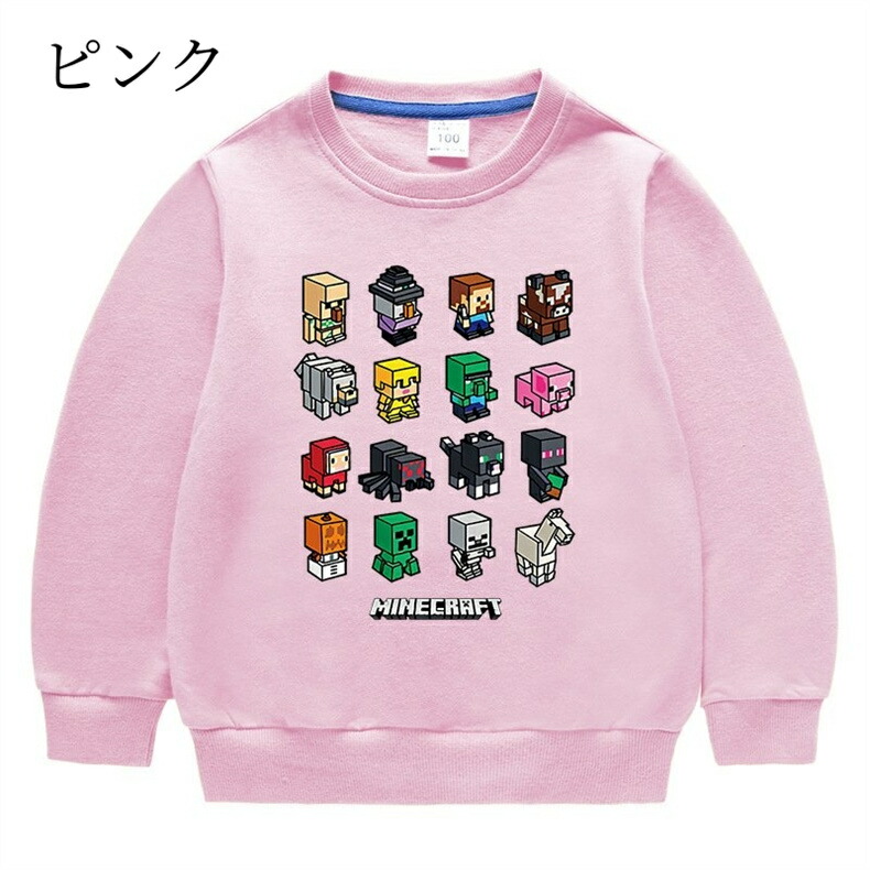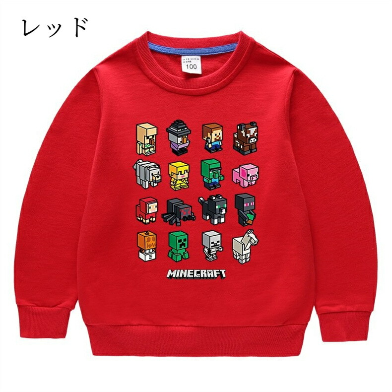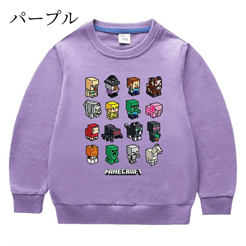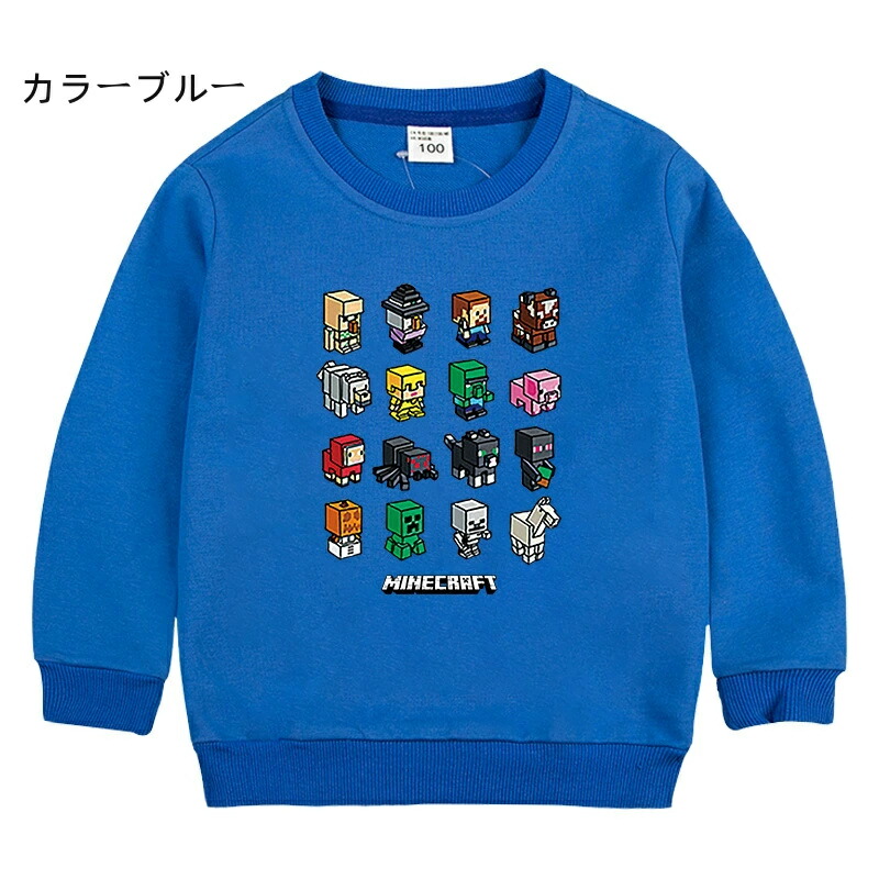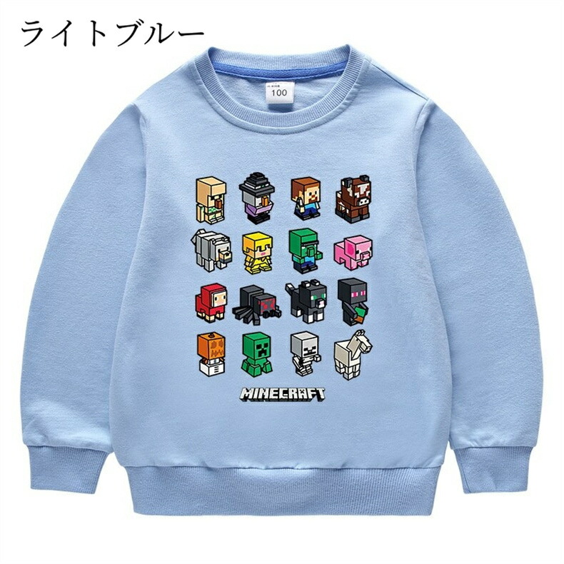 長袖 子供服 キッズ マインクラフト風 キッズ ベビー マタニティ 続々登場 ライトブルー ローズレッド グリーン グレー イエロー レッド ブラック ピンク オレンジ カラーブルー ホワイト ネイビー パープル 90cm 100cm 110cm 120cm 130cm 140cm 150cm