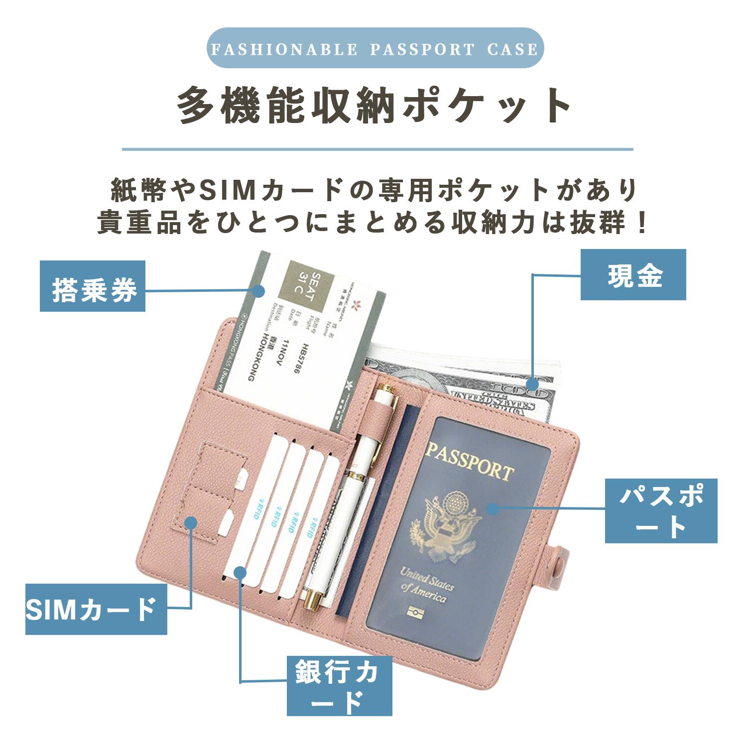 パスポートケース スキミング防止 パスポート収納 おしゃれ パスポートカバー 財布一体型 レディース 多機能収納ポケット付き トラベルウォレッド 軽量 ペンクリップ付き カードケース 国内 航空券入れ